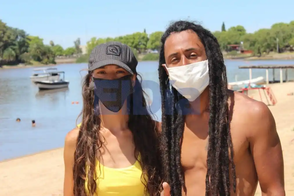 Aunque la gran mayoría nos visita 2 o 3 tres días, algunos afortunados descansan en Gualeguaychú una semana. Hay casos de turismo interno, como el de una pareja de la ciudad de Villa Elisa -localidad conocida por sus termas- que decidieron venir “porque nos gusta el lugar, estamos tranquilos y cerca de nuestros pagos”, a la vez que compararon que los precios “son muy parecidos a los que se manejan allá”. Se destaca en la ciudad la presencia de gente de provincia de Buenos Aires, como una pareja de Escobar que tienen familiares aquí y decidieron pasar unos días disfrutando de las comodidades, la sombra y la playa del Balneario Municipal. También está el caso de un comerciante de Monte Grande (Gran Buenos Aires) que, entrevistado por El Día, señaló que “siempre que podemos venimos a Gualeguaychú, nos gusta el lugar, es tranquilo, lo preferimos al mar, ideal para venir con los chicos y pasar una semana, antes de volver a la rutina”. Consultado por los precios de alojamiento y comida, indicaron que “son más elevados que en la temporada pasada, aunque entendemos que hayan subido porque tenemos comercio y sabemos que todo aumenta”. En lo que refiere a la gastronomía, contaron que “normalmente compramos algo y venimos con la heladerita a la playa”. Seguimos recorriendo la Playa del Puente y llegamos a ellos, los más destacados por su look particular y su buena onda: Vinicius y Verónica. Ellos son joven pareja del sur del Gran Buenos Aires, que llegaron a Gualeguaychú ni más ni menos que en bicicleta. Pedalearon varios kilómetros hasta nuestra ciudad, la que eligieron “porque está cerca" y también "como primera prueba de lo que denominamos Ciclo–Turismo”. Es decir, recorrer distintas localidades en bicicleta. Vinicus es rastafari, y lleva ¡15 años sin cortarse el pelo! Contó a ElDía que salieron el lunes a la tarde desde Lanús, y que "el 31 nos agarró en la ruta, pero no nos preocupamos porque la idea es ir haciendo escalas en distintos lugares”. Acerca de las complicaciones por la pandemia a la hora de viajar, planteó que “es algo que nos preocupa a todos, pero transitamos cumpliendo con los protocolos y cuidándonos de la mejor manera, aunque resulte incómodo usar la mascarilla queremos disfrutar el verano y la única manera es así, caso contrario nos vamos a tener que encerrar de nuevo”. Por último, aseguró que las playas que tiene Gualeguaychú a la vera de la ciudad “son muy lindas”, y destacó que “es la primera vez que vengo y me sorprendí con las bellezas que tienen”. El estado de la Playa del Puente y el Balneario La Playa del Puente está señaliza en su totalidad para que los visitantes ocupen un lugar respetando el distanciamiento social. Cabe destacar que en el ingreso a la misma se encuentra un puesto en donde agentes municipales controlan la temperatura de los veraneantes. Por otra parte, el Balneario Municipal es un espacio que esta concesionado. Las playas están limpias y con mucha arena y hay presencia de guardavidas, pero aun no se han demarcado las distancias sociales que se deben respetar. Según comentó gente que concurre asiduamente al lugar, en horas de la tarde la cantidad de gente aumenta y hay personas que no respetan los protocolos vigentes. La pileta del Puente Acerca de la demora para su funcionamiento, el Director de Poder Popular Adrián Romani explicó que “trabajamos para inaugurar la pileta cuanto antes, restan unos detalles para ponerla en funcionamiento con la cantidad de personas que el protocolo nos permite, previa revisión médica, obligatoria en todas las piletas, y la toma de temperatura”. Pese al aumento de contagios en la ciudad, el funcionario señaló que "están todos los protocolos dados como para llevarlos adelante sin ningún tipo de dificultades”, y adelantó que “hasta el momento la Colonia de Vacaciones se desarrollará como se había planificado en un primer momento”. Remarcó que “ diseñamos los protocolos pensando en los peores escenarios, con todos los cuidados sanitarios para poder llevarlos adelante”, y adelantó que este martes "mantendremos una reunión con todos los equipos técnicos para ultimar detalles, y es de esperar que se puedan lograr mayores libertades para sumar mas chicos y actividades”.