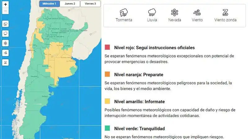 "El área será afectada por lluvias y tormentas fuertes, pudiendo estar acompañadas de ráfagas, granizo, intensa actividad eléctrica y abundante caída de agua", alertó el Servicio Meteorológico Nacional.
