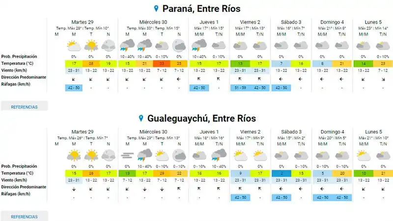 Las condiciones de tiempo se estabilizaron por estos días en el país, aunque entre viernes y sábado se quebraron varios récords de temperatura para un mes de septiembre. Según confirmó el Servicio Meteorológico Nacional, hubo registros de más de 45 °C en Salta. Pero se destacó la marca obtenida de 42,6 °C en Corrientes Capital el sábado, ya que significó no solamente un récord para septiembre, sino absoluto desde que se tienen registros, es decir, incluso superior a cualquier marca registrada en verano. El frío viene en camino Este martes, se registran condiciones de muy buen tiempo sobre el centro y norte del país, con cielo mayormente despejado y temperaturas en ascenso. Sin embargo, comienza a entrar en escena un nuevo sistema frontal frío que recorrió este lunes la Patagonia argentina dejando lluvias y nevadas en el sur de la región y especialmente en el sector cordillerano sur.Tras una tarde de miércoles agradable a cálida en la franja central del país, con marcas que en Entre Ríos superarían los 30 grados, y nuevamente calurosa a muy calurosa en las provincias del norte, este frente frío traerá un cambio de condiciones a lo largo del jueves con el cambio de mes, produciéndose un notorio descenso de temperaturas, ratificó el pronosticador Christian Garavaglia. El ingreso de un anticiclón postfrontal en la Patagonia, favorecerá una segunda mitad de semana con vientos intensos del sur/sudeste en toda la mitad norte de la Argentina, dejando condiciones de abundante nubosidad, precipitaciones sectorizadas, y fundamentalmente, marcas térmicas varios grados por debajo de lo normal para comenzar el nuevo mes de octubre. En el caso de Entre Ríos, estiman mínimas de dos a siete grados para el sábado que sería la jornada más fresca en nuestra provincia.