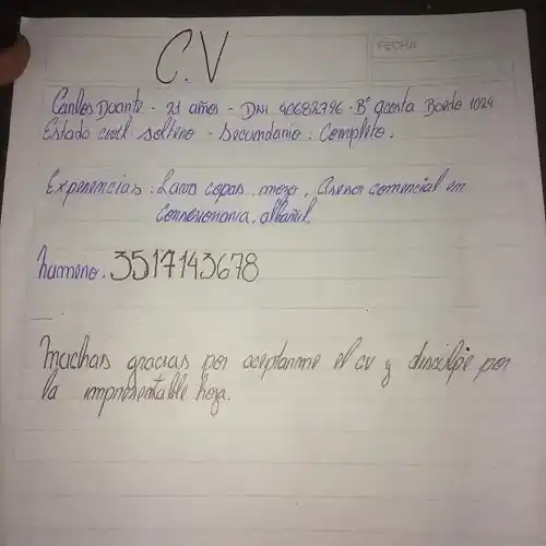 Conseguí trabajo en una fábrica de vidrios. La municipalidad me ayudó", contó Carlos Duarte, de 21 años hace un año. Poco antes, su historia se había viralizado porque su currículum lo había escrito a mano. Sin embargo, eso quedó como una anécdota luego de ser contratado por primera vez en blanco. Hoy, su nombre vuelve a resonar porque lo ascendieron. Desde aquel momento en que Carlos se acercó a darle una "impresentable hoja" a la dueña de una confitería, que viralizó la historia, creció mucho laboralmente. “Avancé bastante. Aprendí un montonazo. Muchísimo. Pasé a cargar vidrios a la lavadora. Que es donde pasa el vidrio y después pegan el marco que antes salaba yo. Ya tengo Categoría 2“, relata. En la fábrica tiene horarios rotativos: antes tenía que levantarse a las 4.30 y tomar dos colectivos para llegar a las 6 de la mañana. Pero ahora se compró una moto y "en media hora estoy en la fábrica. Sólo para llegar a laburar la compré”, relata en el diario La República. Tras su ascenso dentro del empleo que consiguió, el joven se puso de novio y sueña con tener la casa propia. Mientras sigue trabajando arduamente para seguir ascendiendo y llegar a categoría cinco para tener más ingresos que puedan ayudar a su familia. Sin embargo, mientras, disfruta lo que fue superar la adversidad de no tener trabajo ni dinero para hacer un CV.