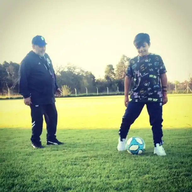 Gianinna Maradona mostró algunas imágenes sobre la visita de su hijo al Diez. Hubo jueguitos con la pelota, aclaraciones de Dalma y reacciones de Claudia Villafañe.