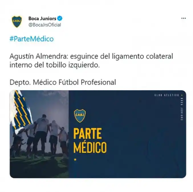 Boca ganó su segundo amistoso de pretemporada: fue 2-0 a Sarmiento de Junín por los tantos de Cristian Medina y Cristian Pavón. Miguel Russo va sacando conclusiones positivas previo al choque del próximo martes ante Atlético Mineiro por la ida de los octavos de la Libertadores aunque esta mañana en el Centro de Entrenamiento de Ezeiza recibió una mala noticia: se lesionó Agustín Almendra. Durante el primer ensayo que se llevó a cabo en la jornada matutina, el mediocampista de 21 años que se perfilaba como titular en el duelo copero contra los brasileños, sufrió una embestida del ex Boca Federico Bravo quien, en su intento por barrer para quitarle el balón, le arrastró el tobillo izquierdo y provocó su lesión y salida del partido. Luego de la acción Almendra se sometió a estudios que determinaron que sufrió un esguince del ligamento colateral interno del tobillo izquierdo. Después del parte médico oficial, en el Xeneize se confirmó una baja importante para el inicio de la nueva campaña. Almendra no estaría disponible por, al menos, un mes. Quien lo reemplazó en el transcurso del amistoso fue Diego Pulpo González, quien sumó crédito para ser titular el próximo martes, cuando Boca reciba al Mineiro desde las 19:15 en la Bombonera (la revancha será el martes 20/7 en Belo Horizonte). En cuanto a las conclusiones de la prueba, hay que remarcar que Russo le da rodaje a la dupla central conformada por Carlos Izquierdoz y Marcos Rojo, mientras que optó por una línea de 4 en el fondo (Weigandt por derecha y Sandez por izquierda). Las otras bajas siguen siendo los colombianos Frank Fabra y Edwin Cardona, quienes el próximo viernes terminarán su participación en la Copa América con su selección en el duelo por el tercer y cuarto puesto ante Perú. En principio, no estarían disponibles para la ida contra Atlético Mineiro. En el mediocampo el DT volvió a excluir a Alan Varela y mantuvo como inicial a Esteban Rolón, uno de los refuerzos, junto a Cristian Medina y Almendra. Ahora el cuerpo técnico deberá resolver si incluye de movida al Pulpo González o Varela frente a la baja de Agustín. Arriba asoma el tridente compuesto por Pavón, Briasco y Villa. En tanto que Nicolás Orsini sumó sus primeros minutos de fútbol y también pide pista, al igual que el chico Luis Vázquez. En el segundo match Boca alineó a Javier García; Eros Mancuso, Lisandro López, Carlos Izquierdoz, Valentín Barco; Alan Carela, Jorman Campuzano, Diego González; Aaron Molinas, Nicolás Orsini y Agustín Obando. Los de Junín contaron con Facundo Ferrero; Yamil Garnier, Marcelo Herrera, Francisco Molina, Lautaro Montoya; Claudio Pombo, Federico Vismara, Gervasio Núñez, Yair Arismendi; Patricio Cucci y Rodrigo Salinas. Terminó empatado 0-0 en la misma cancha. Por la primera jornada de la Liga Profesional, el Xeneize visitará a Unión de Santa Fe el viernes 16 de julio a partir de las 19, mientras que el mismo día Sarmiento recibirá a Estudiantes de La Plata desde las 21:15. En tanto, los de Sciacqua disputarán los octavos de final de la Copa Argentina ante Temperley el martes 20 de julio (desde las 15:05 en el estadio San Nicolás de los Arroyos).