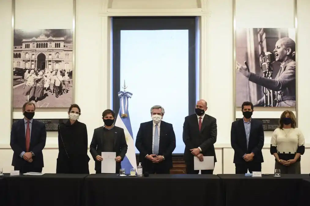 Los gobernadores Bordet, Kicillof y Perotti se reunieron con el Presidente en la Casa Rosada, donde firmaron el convenio para realizar obras de infraestructura sanitaria y de equipamiento y viviendas.