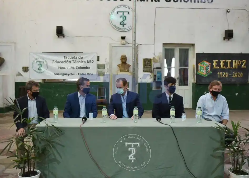 El miércoles, poco antes del mediodía, en las instalaciones de la Escuela Técnica Nº 2 “Presbítero José María Colombo”, se realizó la apertura de sobres para la licitación de la construcción y refacción del nuevo edificio para la institución educativa. En total, participaron cuatro oferentes. El acto central estuvo encabezado por el gobernador Gustavo Bordet y el intendente Martín Piaggio, quienes abrieron los sobres de licitación que contempla esta primera etapa de la construcción de un edificio nuevo para relocalizar los talleres existentes. También estuvieron presentes el senador provincial Jorge Maradey, la diputada provincial Mariana Farfán, la viceintendenta Lorena Arrozogaray, el ministro de Producción, Turismo y Desarrollo Económico Juan José Bahillo, el de Planeamiento Marcelo Richard, funcionarios provinciales, municipales y parte de la comunidad educativa de la Escuela Técnica, que fue representada por el rector César Timone. “Hace poco más de un año atrás, un grupo de alumnos me acercó una carpeta en la cual pedían las obras que se necesitaban, que era hacer un edificio nuevo porque las condiciones edilicias del inmueble actual no están dadas”, rememoró el Gobernador sobre aquella visita al establecimiento en 2019, cuando recorrió las instalaciones y se comprometió a poner en marcha el proyecto que ayer logró tener su proceso licitatorio. “El objetivo es que puedan desarrollar las clases y los talleres como se requieren. Entonces armamos un proyecto totalmente nuevo, comenzamos con los trámites administrativos y ahora, finalmente, llegamos al proceso de licitación de esta obra de más de 168 millones de pesos, y que en 40 días estarán comenzando las obras para que, en dos años, la Escuela Técnica Nº2 tenga su edificio nuevo”, afirmó Bordet. “Todo esto me pone muy contento porque estamos llevando adelante el compromiso que habíamos asumido y destacar el trabajo que ha tenido la comunidad educativa de esta escuela, que es la que ha motorizado este pedido. Nosotros, lo que hacemos es canalizarlo y llevar adelante la obra y hacer que se termine a tiempo”, concluyó el mandatario entrerriano y agregó: “Felicito a todos los estudiantes y docentes que gestionaron esta obra, que es de ellos”. Previamente, el intendente Martín Piaggio había dado la bienvenida a los presentes y había expresado que “es una enorme felicidad poder dar este paso, ha sido muy necesario, en una lógica de mucho compromiso del Gobierno provincial con respecto al avance de las condiciones edilicias de nuestros establecimientos educativos”. “Estamos viviendo algo muy especial con el histórico Colegio Nacional Luis Clavarino y que ahora sea el momento de esta querida Escuela Técnica para su reconfiguración es una felicidad enorme para todo nuestro pueblo, es un enorme paso y felicitamos a todos los que han trabajado hasta este momento para que esto ocurra”, prosiguió.