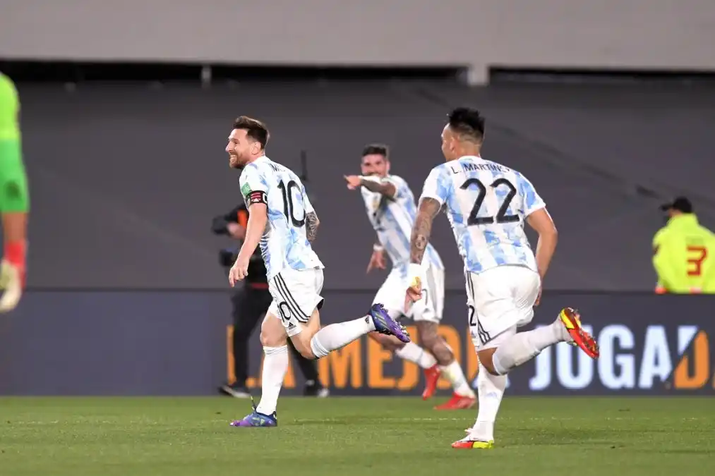 El partido fue parejo, con mayor tenencia de pelota para Argentina pero con tres chances claras para Uruguay, todas en los pies de Suárez, que primero encontró dos brillantes respuestas de Dibu Martínez y sobre los 30 estrelló un remate en un palo. El equipo de Scaoni quebró el partido con dos goles en cinco minutos sobre el cierre del primer tiempo, el primero de Messi y el segundo de De Paúl, luego de haber sufrido un par de buenas situaciones para los uruguayos en los pies de Suárez. En el complemento, Lautaro Martínez puso el tercero y luego el equipo mostró todo su repertorio, pudiendo haber marcado un par de goles más. El jueves ante Perú buscará dar otro paso hacia Qatar.