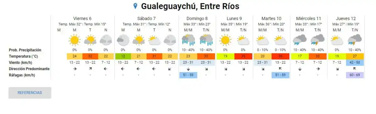 Según el Servicio Meteorológico Nacional, durante los próximos días el calor trepará hasta los 35 grados en Gualeguaychú, pero además se anticipan algunas inestabilidades, con probables precipitaciones durante el fin de semana. Pero lo cierto es que durante el fin de semana comienzan nuevamente a subir las temperaturas y las mismas superarán ampliamente los 30 grados y quedarán atrás los días con mañanas frescas. Luego, a medida que pasen los días, el calor irá en aumento y se prevén temperaturas que lleguen hasta los 35 grados, sobre todo después del domingo. Las mínimas también estarán más elevadas. Sin embargo, sobre el cierre del fin de semana, también se anuncian ciertas precipitaciones, con probable caída de chaparrones aislados. Pero no serán tantos, ya que estos no indican que la temperatura vaya a bajar. Durante la semana próxima, también hay posibilidad de que se produzcan precipitaciones, pero más sobre el miércoles o el jueves.