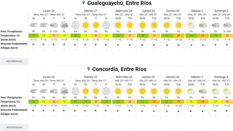 Con mínimas de 9 grados en el sur entrerriano, tal como marcaba en termómetro a las 5 de la mañana en Victoria, o de 11 grados como se restiraba a esa hora en Paraná comenzaba este lunes una semana en el cual la característica principal sería la ausencia de lluvias en nuestra provincia. Durante las mañanas podrían presentarse neblinas. Así, se notan las noches y mañanas con bajas temperaturas, más en consonancia con lo que es el otoño. Habrá poca nubosidad con algún incremento temporario. La temperatura presentará poco cambio en cuanto lo observado durante el fin de semana, con el descenso de las marcas en la franja central y corredor pampeano, como así también para las principales provincias del norte. La situación responde al ingreso de aire patagónico polar. Las lluvias van a quedar ausentes del país, con ambiente más seco, debido al retroceso de aire húmedo en capas bajas. Las temperaturas irán ascendiendo más hacia el fin de semana, con mínimas de entre 13 y 15 grados; y máximas que podrían superar los 25 grados durante las tardes en Entre Ríos. Pronóstico para hoy en Entre Ríos Vientos débiles o muy débiles del sur, rotando al sureste. Fresco. Probables neblinas y bancos de nieblas. Despejado sobre el norte y centro de la provincia, y poco nuboso sobre el sur de ella. Luego por la tarde nubosidad en temporario incremento parcial, y vientos débiles del sureste. Nubosidad en disminución por la noche.