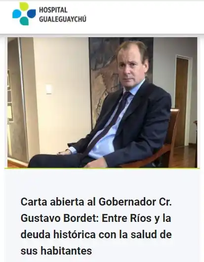 En una polémica decisión, la página oficial del Hospital Centenario replicó de manera pública la nota enviada al gobernador Gustavo Bordet días atrás, la misma a la que ElDía accedió el jueves pasado, y que generó un profundo malestar en las autoridades provinciales, a tal punto que detonó el desenlace ya conocido. Noticia relacionada: Fuerte reclamo a Provincia de autoridades del Hospital y referentes del Piaggismo "Carta abierta al Gobernador Cr. Gustavo Bordet: Entre Ríos y la deuda histórica con la salud de sus habitantes", fue el título de la publicación de la página institucional del Centenario, acompañado por una foto del mandatario provincial que ilustra la nota. Todo ello fue publicado pese a que Martín Roberto Piaggio ya dejó de ser el director. Noticia relacionada: Qué motivó la salida de Martín Roberto Piaggio del Hospital Centenario "Desde el Hospital Gualeguaychú se remitió una carta al gobernador Bordet el 21 de septiembre", aclararon, y luego compartieron el ya conocido texto de la carta. LA CARTA COMPLETA Con la deferencia que la oportunidad amerita, dirigimos esta carta a usted, en nuestra calidad de representantes e integrantes del sub sistema público de salud, desde el sur de la provincia de Entre Ríos. Evitaremos redundar en la descripción de aspectos generales de la pandemia harto conocidos, sólo destacaremos que somos conscientes que tanto la situación de emergencia sanitaria, como las respuestas a ella, son inéditas. Asimismo, dentro de este contexto tan crítico como incierto, creemos oportuno hacer ciertas reflexiones, iniciando con que este mes de septiembre de 2020, se han cumplido 42 años de la DECLARACIÓN de ALMA-ATA, en ocasión de celebrarse la Conferencia Internacional sobre Atención Primaria de Salud en el año 1978, como así también, resulta oportuno destacar que las manifestaciones que a continuación exponemos, transitarán bajo el espíritu de aquella declaración, pretendiendo contribuir a remediar antiguas inequidades que, a pesar de los esfuerzos realizados, aún hoy se observan en nuestra Provincia. Dicho esto, urge sin preludios ni eufemismos, hablar de la deuda histórica con la salud de los entrerrianos y las entrerrianas. Esta deuda pesa sobre toda la provincia, pero no en iguales proporciones, ya que hay diferencias que se acentúan hacia el interior de la misma, lo que también pone sobre la mesa la necesidad de replantear el federalismo -en la Provincia que lo acunó- tierra adentro de los ríos Paraná y Uruguay. En este aspecto, consideramos que el mes de marzo del 2020 fue una bisagra para la vida de la comunidad de Gualeguaychú, por un lado porque al igual que en toda la región, se marca el inicio de los efectos de la pandemia, pero también, porque se aceleró un proceso inédito que usted también ha promovido: la integración del primer y el segundo nivel en el marco de la Estrategia de Atención Primaria de la Salud. Si bien ha tenido como catalizador la nueva gestión hospitalaria, deviene de un proceso de salud que atraviesa nuestra ciudad y que encuentra sus orígenes hace más de veinte años, que además se ha ido profundizando paulatina y sostenidamente. Dicho proceso aún en épocas de crisis extrema, continúa su marcha inclaudicable hacia un destino inclusivo y de calidad en el acceso al derecho a la salud en su sentido más amplio. Este proceso de gobernanza integradora en salud, del primer y segundo nivel de atención, es un objetivo inevitable si pretendemos construir un paradigma superador al que actualmente nos encontramos. La integración de los dos niveles de atención es el camino más atinado para garantizar el acceso y ejercicio del derecho a la salud y la continuidad de cuidados de la población, optimizando recursos -hoy, más que nunca, escasos e imprescindibles-, y fundamentalmente rompiendo las lógicas de fragmentación y segmentación imperantes en el sistema como lo conocemos. Como primer corolario de esta carta, entendemos y así queremos hacerlo saber: que no hay sistema de salud público posible si no existe integración entre los distintos niveles, instituciones, equipos y la comunidad en su conjunto. Siendo este último factor determinante, ya que sin ese diálogo con la comunidad, sin esa participación, la lejanía con aquellos y aquellas a quienes se pretende garantizar derechos, no haría más que transformar a éstos en meras declamaciones. Llegada esta instancia, hemos de mencionar que la red de centros de Atención Primaria de Salud de Gualeguaychú son una referencia no sólo en la región, sino también a nivel nacional; sostenida por nueve Centros de Atención Primaria de la salud (CAPS) y Centros de Integración Comunitarios (CIC), administrados y financiados con recursos municipales, y además, dos Centros de Atención Primaria provinciales que actualmente se están integrando en el sistema local de salud. Ese primer nivel de atención históricamente encontró desarticulación con las reparticiones provinciales, fundamentalmente con el segundo nivel de atención a cargo del Hospital de referencia de la región sanitaria IV. Aquí es más que necesario destacar que la red de Centros de Atención Primaria de la salud de Gualeguaychú, se sostiene fundamentalmente con recursos municipales, es decir, con el esfuerzo de los vecinos y vecinas de la ciudad, ya que no ha existido por parte del Estado Provincial el traspaso de competencias y el correspondiente financiamiento en los términos del artículo 240 inc. 14 de nuestra Constitución Provincial, el cual al establecer las competencias de los municipios dispone que entre ellas se encuentra “(..) La atención primaria de la salud, a su expreso requerimiento, y con la consiguiente transferencia de recursos”. Menos aún se ha dado cumplimiento al artículo 246 de la Constitución Provincial que al hablar de la coparticipación impositiva impone expresamente que “No habrá transferencia de competencias