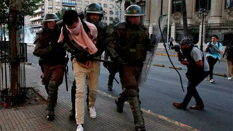 Los manifestantes volvieron a protestar en Santiago de Chile, donde rige el "Estado de emergencia" decretado por el presidente Piñera. Esta decisión del gobierno derivó en la presencia masiva de militares en las calles.