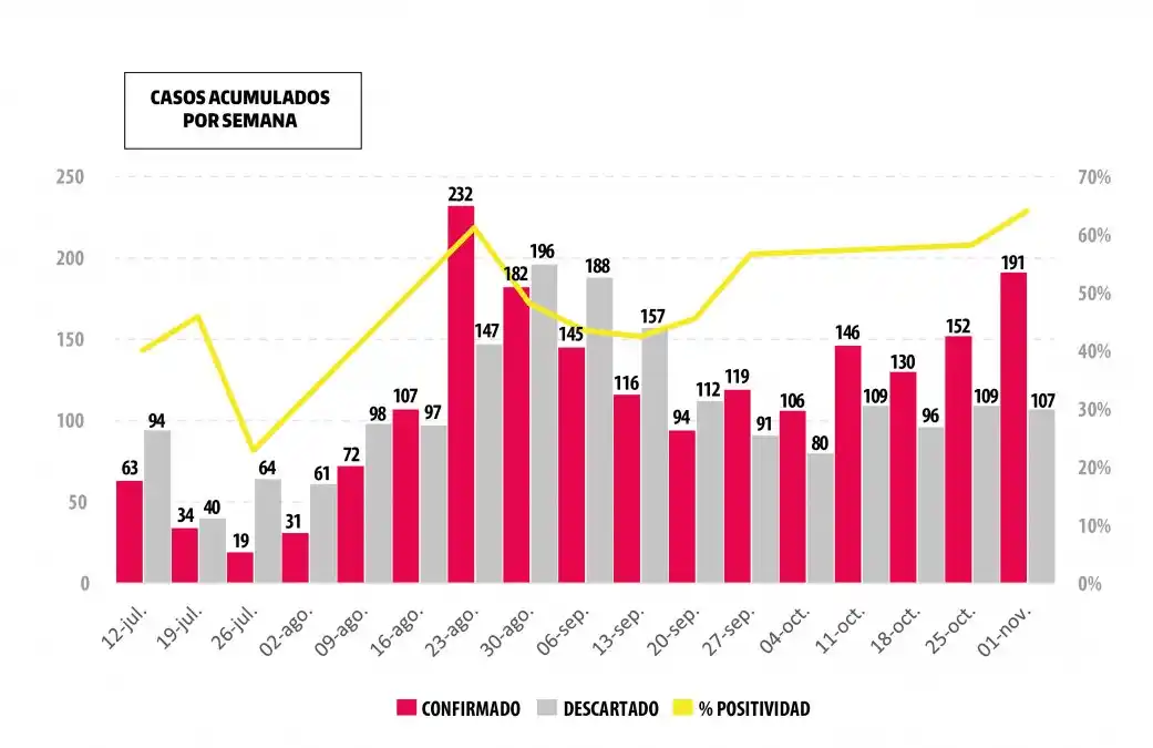 Por Mónica Farabello Lejos quedó el temor por los viajes a Buenos Aires o a quienes llegaban de viaje desde el exterior (cuando aún se podía viajar). Ahora el virus circula entre nosotros y lo hace cada vez con mayor agilidad. El tiempo de duplicación de casos llegó a superar los 60 días y actualmente se ubica en los 39 días, mientras que los contagios por viajes a zonas de transmisión comunitaria ascienden sólo al 1%. Entonces ¿cómo seguimos en medio de una escalada de casos y a sólo 20 días del comienzo de la temporada turística? La pregunta resuena entre los integrantes del COES, los directivos del Hospital y los referentes del Ejecutivo local. Cerrar todo no pareciera ser una opción para los comerciantes y mucho menos para la gran cantidad de vecinos que han decidido retomar su vida “casi normal”. Lo cierto es que Gualeguaychú atraviesa su peor semana desde el inicio de la pandemia. Las cifras hablan por sí solas: En la semana del 23 de agosto los casos confirmados sumaron un total de 232, lo que se traduce en un promedio diario de 33,14 casos diarios. En aquel momento la preocupación era extrema: Se intensificaron los operativos de la Policía en conjunto con el municipio, para controlar el cumplimiento de las restricciones que obligaban a una vuelta a Fase 1. Esta semana los casos volvieron a repuntar. Según datos suministrados por el Ministerio de Salud de la provincia de Entre Ríos, el departamento Gualeguaychú registró un promedio diario de 37,66 casos; es decir 4 casos más por día que en la semana más crítica de agosto y más de 30 casos cuando cierre esta semana. 37,66: es el promedio de casos diarios de la última semana El lunes 9 se confirmaron 13 casos; el martes fueron 70; miércoles 43; jueves 40; viernes 32 y sábado 28. Los 226 casos totales de estos seis días de la semana arrojan este promedio de 37,66 casos, una cifra que preocupa a todos. ¿Cerrar o abrir? Esa es la cuestión El 4 de diciembre es la fecha estipulada para el lanzamiento de la temporada de verano en toda la provincia. Quienes ingresen no necesitarán presentar hisopado, pero sí se trabajará con un sistema de reservas coordinado a través de una App, similar a CuidAr, lanzada en su momento por Nación. Pero ¿qué tipo de publicidad tendrá la ciudad en este contexto? Nadie lo sabe, mucho menos con la incertidumbre que reina en el sector turístico respecto a los protocolos que deben aplicar a la hora de retomar sus actividades. Las versiones más fuertes hablan de un futuro cercano de restricciones sociales para controlar la curva de casos y ofrecerle al turista un panorama de mayor calma en lo epidemiológico. Esto podría traducirse en dos semanas de mayores controles y una reapertura de cara a la temporada. Fue el propio Ignacio Bourlot, médico infectólogo y miembro del Coes local quien manifestó en Radio Cero que “un rebrote con el 60% de camas ocupadas, va a ser muy difícil de contener" y aseguró que se trabaja en volver a inculcarle a la sociedad que consulte ante síntomas y no "guardarse dos o tres días en su domicilio, porque puede ser un Covid con síntomas leves". un rebrote con el 60% de camas ocupadas, va a ser muy difícil de contener “Vamos a tener pacientes de 40, 45 años que van a morir de Covid. Es un escenario que duele pero que hay que tener conciencia porque es una realidad a la que estamos expuestos. Esto no ha pasado y es grave; nuestra ocupación de camas es altísima y el personal médico y de enfermería está agotado. No todo se resuelve con camas y respiradores; se necesitan médicos capacitados", lanzó Bourlot al comienzo de la semana. Algunas cifras de la ciudad Al día de la fecha se han notificado a la dirección de epidemiología de la Provincia de Entre Ríos 4052 casos sospechosos. Se confirmaron 2069 casos y actualmente se encuentran activos 548 pacientes. De los casos confirmados 246 corresponden a personas de 60 años o más y 11 son niños menores de 1 año. 19 pacientes se encontraban cursando embarazo al momento del diagnóstico. En relación a la clasificación epidemiológica de los casos y la distribución en el tiempo. De los casos confirmados en la última semana el 62,7% corresponde a casos comunitarios, en investigación o personal de salud. Los datos corresponden al informe del Ministerio de Salud con fecha 12 de noviembre.