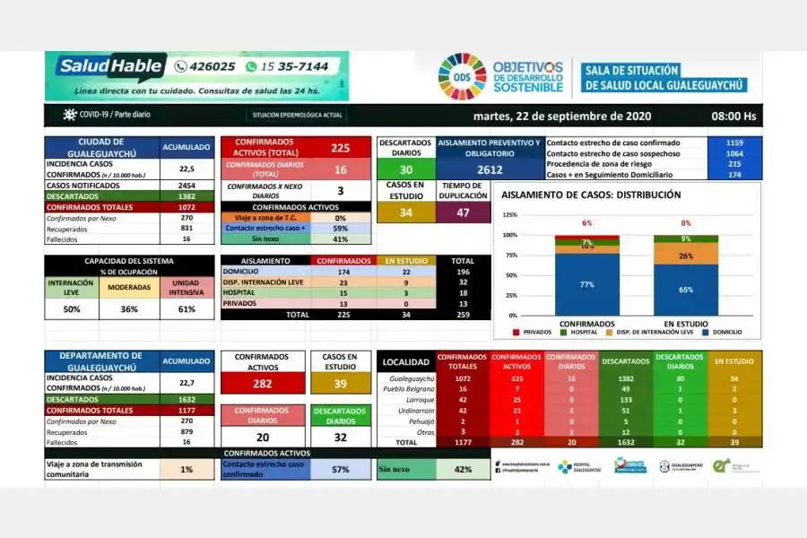A través de su reporte diario, el Hospital Centenario confirmó 16 nuevos casos de Coronavirus en la ciudad, de los cuales 3 fueron sumados como nexo estrecho. El tiempo de duplicación continúa siendo de 47 días y los activos al momento descendieron a 225 casos. En internación leve la ocupación es del 51% y en Terapia intensiva la cifra asciende al 61%. El informe completo