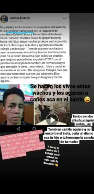 Habló la madre de dos adolescentes que son golpeados por sus compañeros. La mujer brindó detalles de la triste situación que están viviendo, dijo que el hecho fue hace más de 10 días y que desde la escuela "lo taparon"