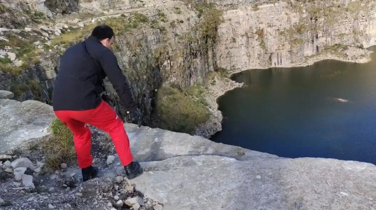 Bomberos y rescatistas desplegaron un operativo para descender a la cantera y salvaguardar la vida del animal, que no sufrió herida alguna.