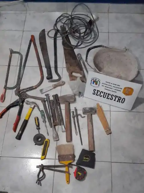 Anoche en la ciudad capturaron a un hombre de 24 por un nuevo ilícito. En este caso, se llevaba varias herramientas de una obra en construcción.