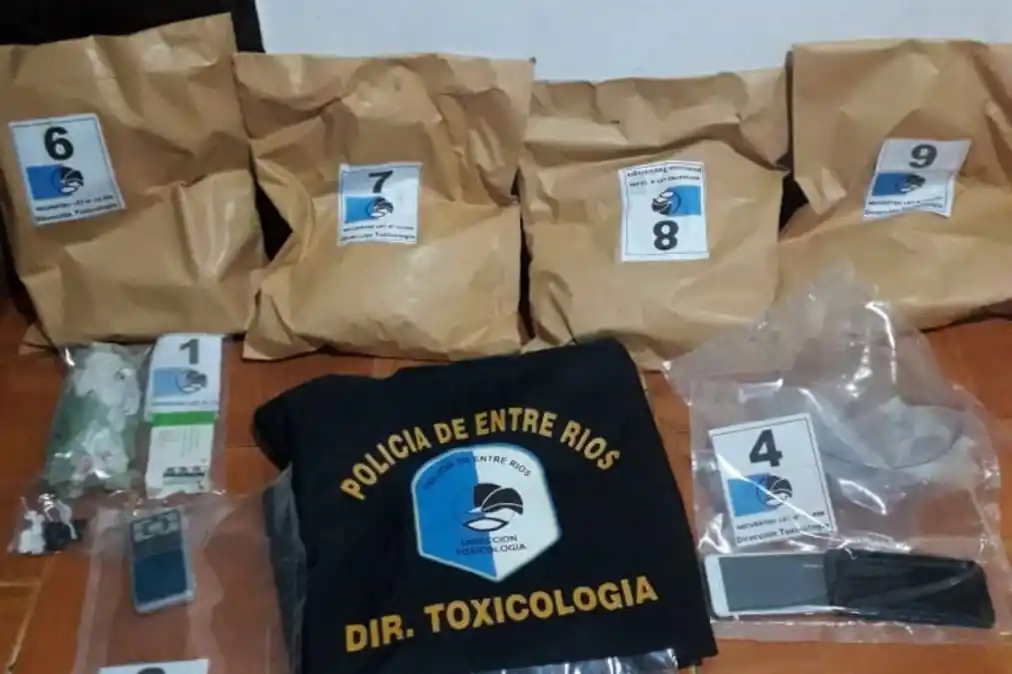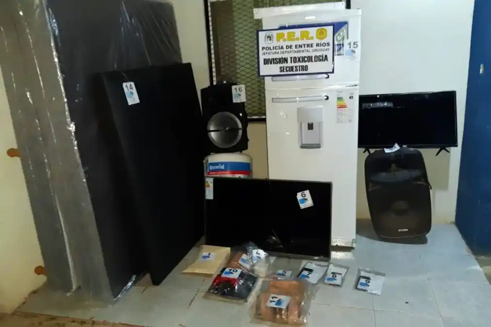 La investigación que culminó con una requisa a las viviendas habitadas y frecuentadas por los sospechados, fue llevada adelante en conjunto desde la Jefatura Departamental de Policía con la Unidad Fiscal de Colón, en este caso representada por Alejandro Perroud. La mayoría de los elementos secuestrados fueron hallados en una misma vivienda ubicada en Barrio Ombú: se evidenciaba que todo provenía del dinero que generaba el comercio de las drogas, lo que se encontraba acreditado en el expediente fiscal. Estos procedimientos, que comenzaron en la tarde del miércoles y se extendieron por varias horas, fueron practicados por personal de la División Toxicología que la Policía de Entre Ríos tiene en Colón. Droga, electrodomésticos y vehículos En el transcurso de un largo operativo policial, se procedió al secuestro de cocaína y marihuana, junto a utensilios de corte, balanzas y otros elementos necesarios para la etapa de estiramiento y fraccionamiento de los estupefacientes. Agrandar imagenSegún indicaron desde la Jefatura Departamental de Policía, el volumen de venta “resultaba ser tan abrumador” que, además del secuestro típico que amerita este tipo de delitos, también se incautó una gran cantidad de electrodomésticos: un televisor LED de 32 pulgadas, una consola de juegos, una Play Station 4, un televisor de 43 pulgadas, cinco teléfonos celulares, un parlante inteligente, una heladera sin uso, una bicicleta marca Pierce, una balanza de precisión, cinco plantas de marihuana, un recipiente plástico con cocaína de pesaje cercano al medio kilo y alrededor de 30 mil pesos en efectivo. Agrandar imagenPara las entregas de droga bajo la modalidad “delivery”, aparentemente utilizaban un vehículo marca Volkswagen modelo Tiguan de color gris y una motocicleta marca Honda modelo Wave, que también fueron incautados. Tres detenidos, uno Covid positivo Liderada por una mujer, la organización aparentemente involucraba a sus propios hijos (jóvenes, mayores de edad) y a una amiga, cuyo domicilio también fue allanado. Ambas quedaron alojadas en la Comisaría de Minoridad y Violencia Familiar, por oficio Nº 358 proveniente del Juzgado de Garantías y Transición de Colón, a cargo de Natalia Céspedes, legajo fiscal Nº 020/10 por “S/actuaciones de oficio - Ley 10.566 Narcomenudeo”. El Entre Ríos pudo saber que la líder de la banda dio positivo al test rápido de Covid-19, motivo por el cual la autoridad policial se comunicó con el Hospital San Benjamín a fin de disponer su aislamiento en el nosocomio, habida cuenta que comparte celda con su amiga coimputada, siendo el único calabozo existente en la Comisaría de la Mujer. Por su parte, el muchacho de 22 años edad, hijo de la líder de la banda, permanece detenido en instalaciones de la Jefatura Departamental de Policía. El resto de la familia, en problemas Otro de los hijos de la mujer detenida está alojado en la Unidad Penal Nº 4 de Concepción del Uruguay, tras haber sido condenado en 2017 a la pena de 4 años y 6 meses de prisión, por “Robo agravado”. Además, tiene otro hijo recientemente condenado por “Hurto” -en juicio abreviado, desarrollado el 17 de marzo pasado- (se le revocó una pena condicional, con prisión domiciliaria hasta su traslado al penal la semana próxima), quien no estaba en el domicilio donde debía cumplir la domiciliaria, así que se lo trasladó a la Jefatura. El restante, de tan solo 18 años, tiene pedido de detención, pero hasta el momento no fue posible localizarlo. Fuente: El Entre Ríos