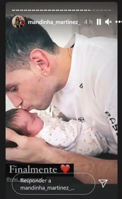 Al igual que los demás jugadores, Emiliano Martínez se reencontró con su familia tras haber sido campeón de la Copa América de la Selección Argentina y además, conoció a su hija, nacida hace pocos días. Debido a la burbuja que mantuvo todo el plantel argentino para intentar evitar posibles brotes de Covid-19, Dibu no pudo presenciar el nacimiento de su hija, pero afortunadamente, ya la conoció y se encuentra con ella y con toda su familia en su casa. Así lo dio a conocer su mujer, Mandinha Martínez, quien publicó en su Instagram la foto, en la que escribió: "Finalmente". Previamente, subió un video del reencuentro del arquero con su hijo, tras dos meses sin poder verse. El arquero argentino que se ganó un lugar importante en la selección de Lionel Scaloni le llevó a su hijo Santi una cantidad enorme de regalos que abrieron juntos. Amada Gama, o más conocida como Mandinha Martínez, es la mujer y compañera de toda la vida del arquero. Nació en Portugal y tiene apenas 29 años. En redes sociales menciona que es diseñadora de interiores y dueña de “Mis sueños kids”, su marca de juegos, cunas y decoración para los más pequeños, con locales en Londres.