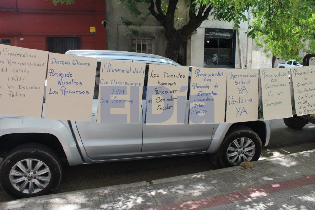 Docentes realizaron una marcha en contra de la presencialidad en las escuelas