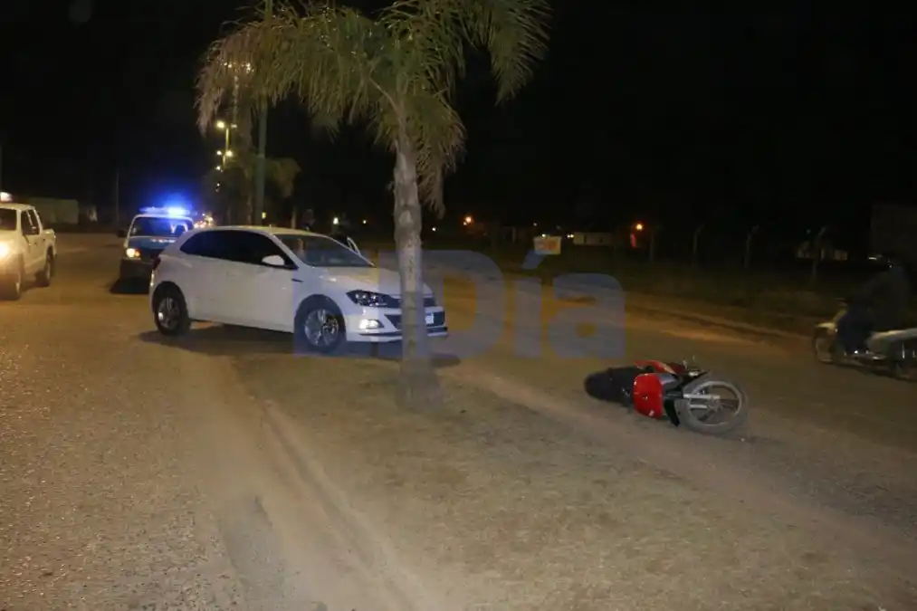 El hecho ocurrió pasadas las 19 en Bulevar Jurado, aproximadamente a 100 metros del ingreso de micros de la Terminal de Ómnibus, cuando un Volkswagen Polo realizó una mala maniobra y dobló en U por uno de canteros del Bulevar, queriendo retomar por la manos contraria de la misma arteria. Mientras hizo la maniobra indebida, una moto Motomel 110 cc que transitaba en dirección sur-norte y en la que viajaban una pareja de aproximadamente 25 años, impactó contra el vehículo. A raíz del violento impacto, los dos jóvenes que se conducían en la moto sufrieron golpes varios y escoriaciones, siendo ambos derivados en ambulancia al Hospital Centenario. Actuaron en el lugar personal de la Policía de Entre Ríos y de la Dirección de Tránsito.