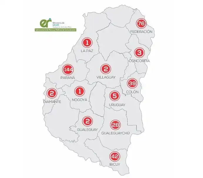 Según los datos del Ministerio de Salud de Entre Ríos, nuestro departamento cuenta con 28 casos en total, de los cuales 11 permanecen activos y 17 ya se han recuperado, lo cual representa un 60%. En toda la provincia, de los los 345 los casos positivos de Covid-19 registrados desde el inicio de la pandemia, 234 aun cursan la enfermedad, y 111 ya la superaron (un 32%). Gualeguaychú acumula solo el 8,1% de los casos de Entre Ríos En Gualeguaychú, con el nuevo infectado que se registró este martes luego de 8 días sin reportar contagios, el departamento acumula 28 casos confirmados, que representan el 8,1% de los casos totales acumulados. Nota relacionada: Detectaron un nuevo caso de coronavirus en Gualeguaychú Mientras que el departamento Paraná concentra el 41,7% del total, con 144 casos. De ellos, 139 (40,2%) se registraron en la capital entrerriana. Este martes también sumó un caso la localidad de Santa Ana, del departamento Federación, que acumula 76 casos, es decir, el 22% del total. Lee también: La situación epidemiológica de la ciudad luego del nuevo contagiado