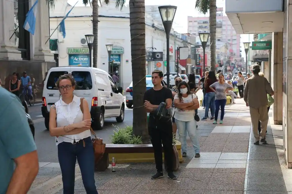 El escenario colapsó en la zona bancaria, donde se aglomeró una gran cantidad de personas que fueron a cobrar jubilaciones y asignaciones, que esta vez vinieron con un bono. No se respetaron las distancias mínimas para prevenir el contagio. A esto se le sumó que la semana que viene arranca con feriados y el temor de que los cajeros se queden sin plata.