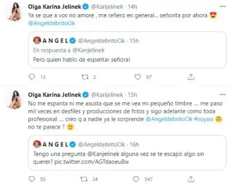 Karina Jelinek estuvo en boca de todos en las últimas horas a partir de un video suyo que se viralizó y que la llevó a ser tendencia en las redes sociales. Todo comenzó cuando la mediática, que acababa de ducharse y estaba con un toallón en la cabeza y una bata de baño cubriendo su desnudez, estaba contando en un 'Vivo' de Instagram a sus seguidores sobre su paso por el programa que conduce Jay Mammón por América Televisión, 'Los Mammones'. Karina Jelinek es una figura muy activa en las redes sociales, y posee casi un millón de followers en su cuenta oficial de Instagram. La expareja de Leonardo Fariña relató que la producción le había regalado dos paletas que llevaban su rostro de un lado, y del otro, una contenía la palabra "sí" y la otra "no". A continuación, Karina, que está acostumbrada a interactuar con su fanaticada por las noches en las redes, les propuso un juego: "Ahora con las preguntas que ustedes me hagan yo les voy a contestar. ¿Qué les parece?", expresó. Sin embargo, la atención de sus 1845 espectadores se centró principalmente en un accidente hot que tuvo la modelo de 40 años, quien por un descuido, se le corrió la bata de baño blanca y enseñó sin querer uno de sus pechos. Y los internautas, muy atentos, no perdieron la oportunidad para capturar el momento con imágenes, que horas más tarde llegaron a manos de Ángel de Brito. El sagaz conductor de 'Los Ángeles de la Mañana' reposteó el video de Karina Jelinek en su cuenta oficial de Twitter y le consultó a la modelo: "Tengo una pregunta Kari Jelinek ¿alguna vez se te escapó algo sin querer?". "No me espanta ni me asusta que se vea mi pequeño timbre... me pasó miles de veces en desfiles y producciones de fotos y sigo adelante como toda profesional... creo que a nadie ya le sorprende, Ángel De Brito. Soy así, ¿no te parece?", contestó la también bailarina en su cuenta virtual, entre emojis de caritas sonrientes. "¡Pero quién habló de espantar señora!", fue la réplica del periodista, provocando aún más a la joven influenciadora con más de 923 mil followers en Instagram. "Ya sé que a vos no amore, me refiero en general... señorita por ahora", disparó Jelinek. Cabe recordar que la diva virtual sufrió un accidente del mismo estilo frente a las cámaras en el 2013, durante el desfile de Moda Look Buenos Aires, cuando se le escapó un pecho sobre la pasarela. Aunque, como toda una profesional, la celebrity sorteó ese momento sin hacerse problemas y continuó con su caminata con total naturalidad.