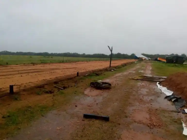 El fuerte temporal arrasó con un galpón de pollos en Entre Ríos