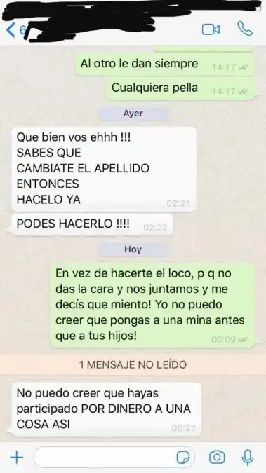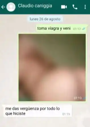 La familia Caniggia sigue al rojo vivo. Luego de que se conoció el contenido de unos polémicos chats en los que, en el medio de la disputa legal entre ambos, Mariana Nannis le pide a Claudio Paul Caniggia que se tome un viagra y vaya a tener sexo con ella (mensaje acompañado claro está por una foto hot); uno de los hijos de la pareja, Alex, salió con los tapones de punta contra su padre. Enojado por la situación familiar, Alexander decidió hacer público en su cuenta de Twitter una serie de chats en la que su padre le recriminaba por la participación que tuvo junto a Nannis en la televisión italiana la semana pasada, en donde dijo que sabía que Caniggia lo dejaba en el auto mientras “se iba con putas”. El ex futbolista al ver la participación de su hijo con Nannis, por la que trascendió que cobraron cerca de 30.000 euros le recriminó por sus dichos. “Cámbiate el apellido entonces. Hacelo ya”, le escribió Claudio a Alexander en el chat que el mediático publicó en su cuenta de Twitter. Alex salió directo a responderle: “En vez de hacerte el loco, ¿por qué no das la cara y nos juntamos y me decís que miento? Yo no puedo creer que pongas a una mina antes que a tus hijos”. El ex futbolista, visiblemente molesto le retrucó el haber cobrado dinero por participar de ese programa. Los polémicos chats En el primer mensaje, Nannis le mandó una foto “hot” al ex delantero de Boca junto al mensaje: “Tomá viagra y vení”. La respuesta Caniggia, claro está, fue un contundente rechazo: “Me das vergüenza por todo lo que hiciste”, le respondió. En el segundo mensaje, un día después de presentarse el programa italiano, Nannis le habría dicho a su ex: “Te quiero cog…, siempre vas a ser mi esclavo”. En esta ocasión, Caniggia ya no le contestó. A pesar del bozal legal internacional que le impuso el abogado de su ex marido, Fernando Burlando, Nannis afirmó en la televisión italiana que su “esposo tiene una amante, una prostituta, que lo droga para obtener su dinero. La conoció en una página, no podemos decir que es su novia porque la conoció en una página donde la puede contratar a corto o largo plazo”. En esa línea, la mediática afirmó que la actual pareja de Caniggia, Sofía Bonelli, es “como una escort. Es paga, escort... Te metés en una página que se meten los hombres y pueden contratar. Te puedo mandar las fotos”. Según trascendió, Nannis volvió a cobrar 20 mil euros por su presencia, tal y como lo hizo la primera vez que participó de este programa.