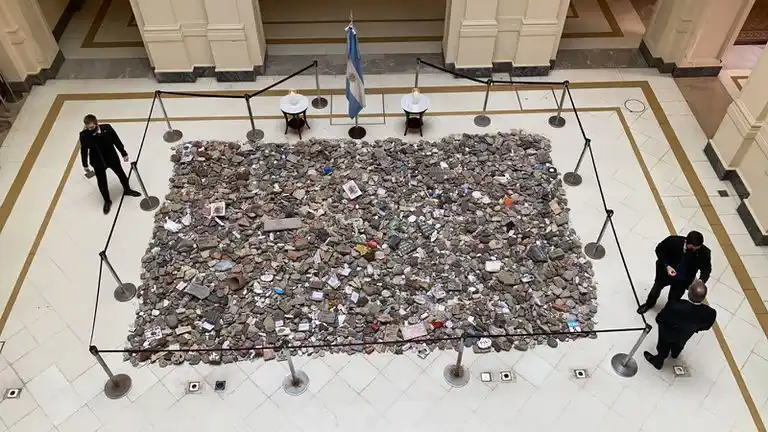 Luego de la “Marcha de las Piedras” que se realizó ayer en conmemoración de las víctimas de coronavirus, el Gobierno nacional ya retiró del lugar todas las piedras y las trasladó al Salón de los Patriotas, dentro de la Casa Rosada. Tras la manifestación “el Gobierno nacional procedió a recoger las piedras que fueran depositadas con los nombres de las personas fallecidas para guardarlas adecuadamente y posteriormente encarar la construcción de un espacio”, aseguraron fuentes oficiales. Según pudo saber este medio, las pierdas permanecerán allí hasta que se defina un lugar más apropiado para hacer allí un espacio de la memoria con todas ellas. El homenaje a las víctimas que dejó la pandemia se llevó a cabo en la tarde de ayer en la Plaza de Mayo y frente a la Residencia oficial de Olivos, donde los asistentes dejaron piedras grabadas con los nombres de muchos de los fallecidos. El homenaje, convocado a través de las redes sociales bajo la etiqueta #Marchadelaspiedras contó con la asistencia de algunos políticos de la oposición, como Ricardo López Murphy, Fernando Iglesias y Sabrina Ajmechet. En la Plaza de Mayo, frente a la Casa Rosada, la mayoría de los participantes del acto, familiares o amigos de los fallecidos, se acercaron en silencio hasta los sectores elegidos para depositar las piedras grabadas con los nombres de las víctimas y se retiraron del lugar después de unos breves minutos de reflexión y lamento por la pérdida. La propuesta de movilizarse en un día feriado frente a la Casa Rosada y la residencia presidencial de Olivos surgió en las redes sociales, donde se fue multiplicando a partir de un tuit inicial que propuso “llevar una piedra por cada muerto por Covid a Casa Rosada y dejarla ahí”. La movilización se fue poblando en las primeras horas de la tarde, tanto en Olivos como en la Plaza de Mayo, con piedras escritas con fibrones o carteles, en las que se intercalaban historias de vida con algunas consignas contra el manejo de la pandemia. La marcha de ayer se produjo a pocos días de que estallara el escándalo por la fiesta en Olivos y el posterior pedido de disculpas del presidente Alberto Fernández. Nombres de las víctimas está impreso en cada piedra En Argentina han muerto más de 109.000 personas a causa de la pandemia de coronavirus.