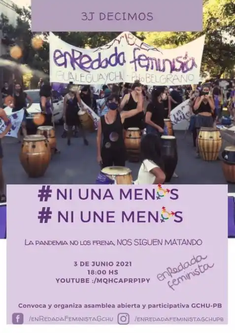 . Mónica Farabello . Escribo esta nota en la tarde del 2 de junio, con la certeza que en pocas horas las cifras publicadas estén desactualizadas. Es que en nuestro país muere una mujer en poco más de 30 horas, en manos del machismo. La violencia de género se expresa de muchas maneras: en lo laboral, en lo económico, en el “humor”, en las modas, en la música y en la peor de sus formas, en los femicidios. Desde el 1 de enero hasta el 30 de mayo de 2021 se registraron 94 femicidios en la Argentina, según lo relevado por el Observatorio Nacional Mumalá que pertenece a la organización Mujeres de la Matria Latinoamericana. De estos 94, 75 fueron femicidios (mujeres asesinadas por hombres); cuatro fueron trans o travesticidios; 11 femicidios vinculados, es decir cuando un hombre mata a un niño o niña o a otro hombre con el objetivo de hacer daño a una mujer. Además se registraron 140 intentos de femicidio y 21 muertes violentas que están en investigación. Este informe fue elaborado y presentado el lunes de este semana, a pocas horas de conmemorarse el sexto “3 de junio”, día en que habitualmente se realizan marchas de #NiUnaMenos desde 2015. Siempre la denuncia previa Es muy común escuchar los testimonios de las sobrevivientes o de los testigos de las violencias machistas. El 25% de las víctimas había denunciado previamente a su agresor; mientras que el 14% del total de femicidios fue cometido por personas que pertenecen a una fuerza de seguridad. Asimismo, el 13% tenía antecedentes penales por violencia de género. Las provincias con más tasas más altas de violencia de género y femicidios son: Santiago del Estero, Neuquén, La Rioja, Formosa y Tucumán. En cuanto a los femicidas, el informe indica que el 63% era pareja o expareja de la víctima, el 14% un hombre conocido por la víctima, el 7% familiares indirectos, el 5% familiares directos y solo el 3% hombres desconocidos por la víctima. En un 8% de los casos no se obtuvo información acerca del femicida. Respecto al espacio físico donde se cometen los crímenes en manos de hombres es en la vivienda compartida o la casa de la víctima. El 71% de los femicidas mató a su pareja en su propia casa, el 10% en la vía pública, el 4% en descampados, otro 4% en el trabajo de la víctima y un 6% en otros lugares. La modalidad usada para el asesinato fue en mayor parte con el uso de arma blanca (37%), luego el arma de fuego (22%), golpes (17%), quemada (8%), por asfixia (8%) y el resto con otras modalidades. Como consecuencia de los femicidios 95 niños, niñas y adolescentes del país quedaron sin madre. Más muertes violentas Si la mirada se amplía hacia otras muertes, la cifra asciende a 143 víctimas mujeres, travestis y trans. “Nuestro observatorio ha identificado en múltiples oportunidades muertes violentas (en Argentina el suicidio se considera muerte violenta) de niñas, adolescentes y mujeres que fueron abusadas sexualmente, que sufrieron violencia de género, que fueron obligadas a prostituirse o en situación de trata, y que tal estado de vulnerabilidad tuvo como desenlace un suicidio, o aparentaban femicidios y que posteriormente peritajes y autopsias arrojan que fue una muerte autoinfligida”, indicaron desde el espacio. Es por esto que le exigen “al Gobierno Nacional la declaración de la emergencia nacional en violencias de género, con el objetivo de incrementar y priorizar recursos humanos y económicos para la atención integral de mujeres e integrantes del colectivo LGTBIQ+ en situación de violencia de género”, concluyeron en un comunicado. El cartelazo del 3J "Creá tu cartel y Sumate al Cartelazo en este #3J", anunciaron desde las cuentas del colectivo que trabaja desde 2015. Para participar de esta acción difundieron en el enlace (http://bit.ly/Carteles3J) las diferentes imágenes y consignas para compartir en Facebook, Instagram y Twitter. El objetivo también es colocar carteles en ventanas, puertas y redes alertando sobre la gravedad de los femicidios y la violencia de género en el país. EL DATO La agrupación Enredada Feminista Gualeguaychú- Pueblo Belgrano convoca para este 3J a las 18 horas a una reunión virtual a través de YpuTube. “Porque la pandemia No frena los feminicidios, transfemicidios y travesticidios. Las invitamos a encontrarnos virtualmente en una jornada distinta pero igual de importante. Ponete tu pañuelo y conecta con nosotras, para mantener la lucha latente”, lanzaron desde la convocatoria. El enlace para las y los interesados es https://youtu.be/MqHCAPrp1pYO