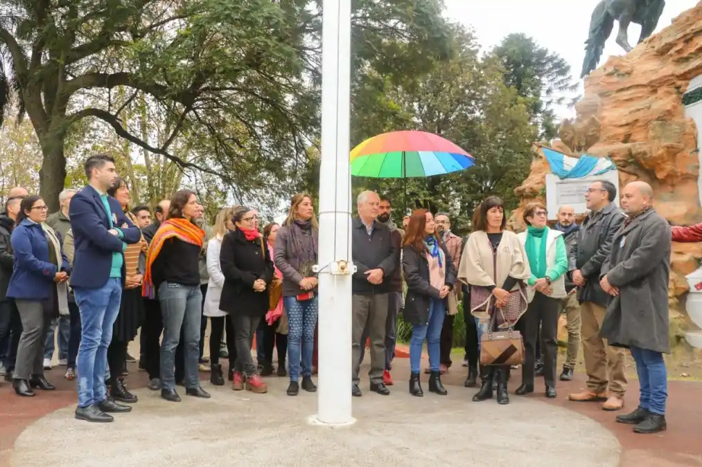 El viernes por la mañana, en un acto encabezado por viceintendente Jorge Maradey, se hizó en el mástil mayor de la Plaza San Martín la bandera arcoíris en conmemoración al Día Internacional del Orgullo LGBTIQ+, siglas que designan colectivamente lésbico, gay, bisexual, trans, intersexual, queer, incluyendo a través del + cualquier otra identidad que se quede en el medio de todas ellas o en ninguna parte.