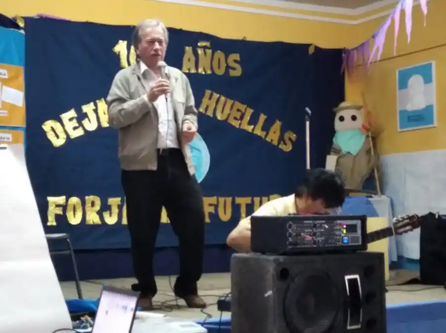 El asesor cultural entrerriano de la provincia presentó su obra en la escuela del Barrio Pereda. Lo hizo con la simpatía que lo caracteriza y estuvo acompañado por Vicente Cúneo y Hugo Mena.