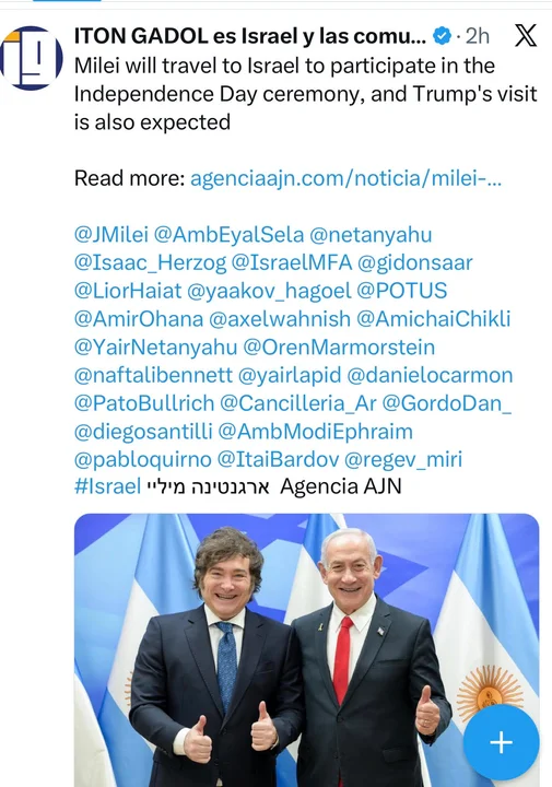 La noticia fue informada por la AJN (Agencia Judía de Noticias) y retuiteada por el mandatario en su cuenta de X.