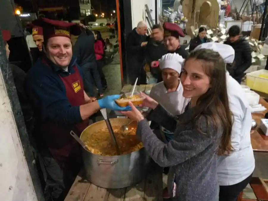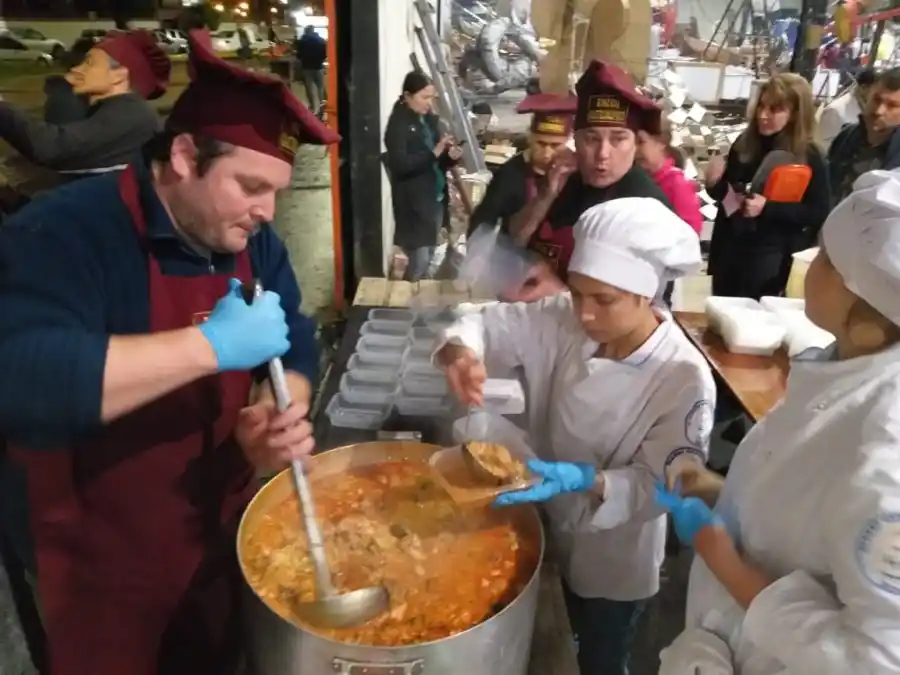 Todo comenzó el jueves por la tarde, cuando comenzó a recolectarse los ingredientes donados por distintos comercios de Gualeguaychú, y a ultimar detalles en la logística para el día viernes. Integrantes de Comisión de Carrozas y el equipo de trabajo de Hoteleros y Gastronómicos de la ciudad, se encargaron de trasladar a los galpones del puerto, el “Fogón Gastronómico”, compuesto del hornillo y un inmenso disco de cocción, con el cual se procederá a preparar este exquisito plato preparado por reconocidos chefs. Previamente, en las instalaciones de la EET 1, alumnos y docentes del establecimiento, junto a los gastronómicos, prepararon la materia prima. A partir de las 20 se comenzó a disfrutar y degustar el exquisito plato, de espectáculos artísticos de la ciudad y la exposición de bocetos de las 32 carrozas que desfilarán el próximo 12 de octubre en el corsódromo. En el evento participaron importantes chefs del litoral del río Uruguay, tanto argentinos como uruguayos. Cada porción fue vendida a un costo de dos entradas para el desfile, es decir, sólo 200 pesos. La idea surgió el año pasado en su primera edición con el aporte de la Asociación de Hoteleros y Gastronómicos y el Fogón Gastronómico de la ciudad. Es respaldada por las instituciones gubernamentales y no gubernamentales, que componen la Mesa de Integración Binacional, en la cual hay representantes de entidades intermedias de Río Negro, Soriano, Gualeguaychú, Pueblo Belgrano y Villa Paranacito, además de funcionarios de dichas localidades. A pesar del mal tiempo, la cazuela fue disfrutada por todos. Ahora, los carroceros ponen toda la energía en terminar sus trabajos que serán presentados en una semana. Repercusión de “traé tu carroza” Los carroceros destacaron la notable repercusión que tuvo la nueva propuesta: “Traé tu carroza”, una invitación a acercar fotos, programas o fotocopias de recuerdos carroceros de los diferentes años. La misma fue respondida de inmediato por la comunidad, enviando fotos o acercando copias de las mismas. El material recibido será expuesto frente a galpones junto con los bocetos 2019 y luego será entregado al Museo del carnaval de la Municipalidad. Las ubicaciones en el circuito podrán ser reservadas con anterioridad: Tanto las sillas, como tribunas y el sector preferencial (que se incorpora este año), podrán ser reservados con anterioridad a los teléfonos +549-3446-15308383 y +549-3446-15558096