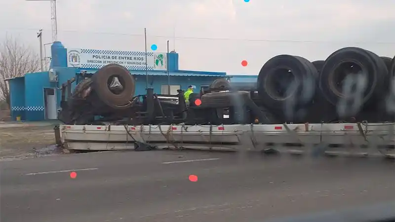 Espectacular vuelco de un camión frente a un puesto caminero entrerriano