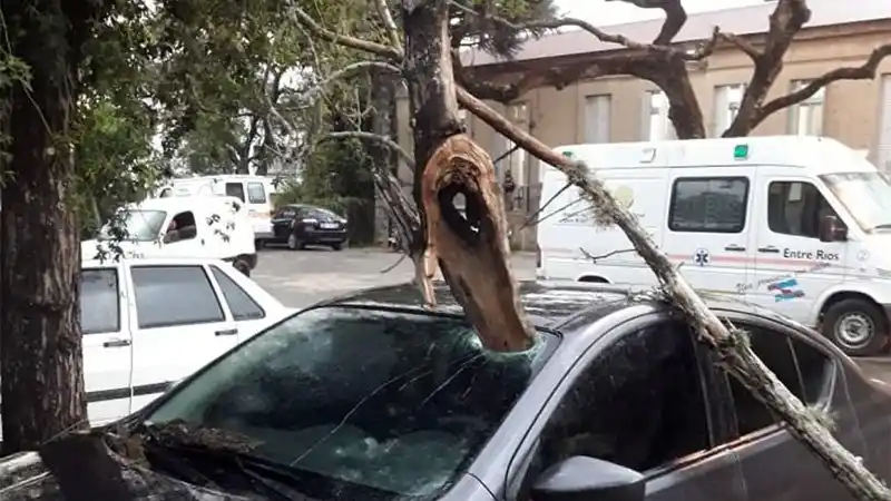 Tres mujeres se llevaron un gran susto cuando, producto de la tormenta, la rama de un árbol cedió y cayó sobre el auto en el cual se encontraban. El rodado estaba estacionado en el estacionamiento de un hospital de Colón.
