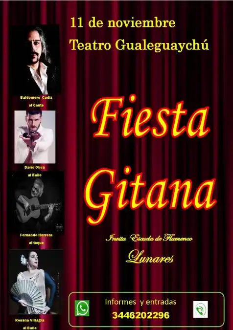 Este domingo 24 de octubre se realizará un seminario de Flamenco, dictado por el bailaor, Darío Oliva. El encuentro está destinado a bailarines y se llevará a cabo en el Centro Cultural de Gualeguaychú Luis María Luján, ubicado en la Costanera del Tiempo. Hay tiempo para inscribirse hasta el domingo mismo. Las clases serán de 11 a 13 horas y de 15 a 17 hs. Otra de las actividades que se están organizando con muchísimo entusiasmo es una noche a pura música y baile. Se trata de la Fiesta Gitana que se realizará el 11 de noviembre en el Teatro Gualeguaychú. Habrá cuatro enormes artistas en escena: el cantaor Baldomero Cadiz, un gitano con gran impronta sobre las tablas. Al baile estará Darío Oliva, transmitiendo toda su pasión y profesionalismo. También bailará Rosana Villagra con el fuego gitano en sus tacos, y además se sumará Fernando Herrera con su guitarra flamenca que hará delirar al público. Por informes para la inscripción del seminario y para reservar entradas, pueden comunicarse por Whatsapp al 3446- 202296