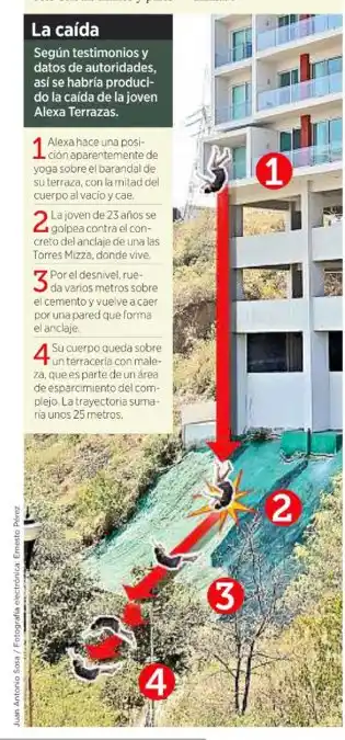 Una joven estudiante, identificada como Alexa Terrazas López, de 23 años de edad, sufrió un terrible accidente haciendo yoga extremo, luego de caer 25 metros de altura desde una terraza. La estudiante del Tecnológico de Monterrey estaba haciendo una maniobra en la que se sostenía del barandal de vidrio de la terraza de un edificio, cuando se resbaló y cayó del piso 8 de una torre de departamentos. El hecho ocurrió en el municipio de San Pedro Garza García, en Nuevo León. Alexa, originaria del estado de Chihuahua, fue intervenida quirúrgicamente luego de sufrir más de 100 fracturas en todo su cuerpo. Según informaron sus amigos en redes sociales, estuvo en cirugía 11 horas y va a estar sedada por 2 semanas. Además le tienen que reconstruir tobillos, rodillas y cara. En redes sociales circula una tarjeta informativa que da más detalles de la joven, quien es hija del empresario Alberto Terrazas Seyffert, ex presidente de la Cámara Nacional de la Industria de la Transformación (Canacintra) de Chihuahua y propietario de Grupo Punto Alto. De acuerdo con ésta, Alexa no podrá caminar en tres años y tendrá que someterse a innumerables terapias. Familiares y conocidos solicitan en Facebook y Twitter una cadena de oración y donadores de plaquetas para la estudiante, quien lucha por su vida en el Hospital Zambrano Hellion. Se requieren 100 donadores de sangre A+ para todas sus intervenciones. "Ya no necesita más sangre, pero se necesitan plaquetas para Alexa Terrazas en el Hospital Zambrano (Solo Hombres)", dice un mensaje divulgado por sus compañeros. "Es una dolorosa y triste lección de vida", dice otro mensaje. La joven cursaba actualmente el noveno semestre de la carrera de Nutrición. En su cuenta de Instagram, su pasión por los deportes extremos la ha hecho una persona popular. Al ser entrevistados de manera anónima por un medio del estado, los vecinos de la accidentada aseguraron que le gustaba poner en riesgo su vida con arriesgadas acrobacias. En su perfil se comprueba que hay diversas fotografías en las que Alexa realiza diversos deportes extremos. En una imagen se le aprecia saltando de un helicóptero, y en otra se le ve saltando de una tirolesa de cabeza. Su madre es Belinda López, directora del Club Independiente Chihuahua, una escuela especializada en la formación de jugadores de fútbol a través de técnicas de entrenamiento alternativas. ¿Qué tan riesgoso es practicar deportes extremos? La popularidad de los deportes extremos ha crecido considerablemente en la última década, tanto entre los que se dedican a ellos de manera más profesional como entre los aficionados que los practican de forma recreativa. Un estudio presentado en 2014 ante la Academia de Cirujanos Ortopédicos de Estados Unidos, mostró que más de cuatro millones de lesiones en un período de 11 años se han atribuido a la práctica de deportes extremos. "La gente joven suele mostrar poco juicio. Ellos ven a Shaun White (estrella de snowboard) elevar el deporte a un nivel completamente distinto y muchos chicos tratan de emular sus trucos", dijo la doctora Vani J. Sabesan, profesora de cirugía ortopédica de la escuela de medicina de la Universidad Western Michigan en esa ocasión. En ese entonces, la cirujana señaló que había un problema cultural que fomenta en los jóvenes el deseo de ejecutar este tipo de maniobras y compartirlas en redes sociales.