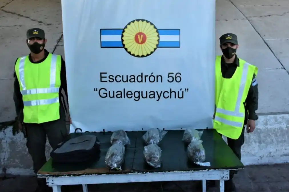 En la jornada del miércoles, personal del Escuadrón 56 de Gendarmería Nacional, emplazados en el control de la ruta 14, efectuó una intervención sobre un colectivo proveniente de Misiones con destino a Buenos Aires. Al realizar la inspección, constató la presencia de una mochila sin identificación, con la asistencia del can detector de narcóticos, y el mismo reacciono como lo hace habitualmente ante la presencia de estupefacientes. Al preguntar a los pasajeros sobre a quién pertenecía dicha mochila, ninguno manifestó ser el propietario. Ante estas circunstancias, se le dio intervención al Juzgado Federal de Primera Instancia de Gualeguaychú, quien autorizó mediante la presencia de testigos hábiles a la apertura de la misma, hallándose en su interior seis paquetes con un peso de 2,684 kilos de marihuana. Por lo cual, el magistrado interviniente dispuso se labren las actuaciones correspondientes, se realice el secuestro de la sustancia encontrada, como así también diferentes orientaciones para intentar determinar el propietario de la mochila, todas estas medidas en el marco de la Ley de estupefacientes Nº 23.737. Por otra parte, el mismo día, al realizar un control de un vehículo proveniente de la localidad de San José con destino a Buenos Aires, con asistencia del can detector de narcóticos se constato que los ocupantes del rodado transportaban entre sus pertenencias 6,7 gramos de marihuana, como así también 81 semillas. Allí intervino la Fiscalía en Turno de la ciudad, quien impartió orientaciones en el marco de la Ley de Narcomenudeo Nº 10.566 de la provincia.