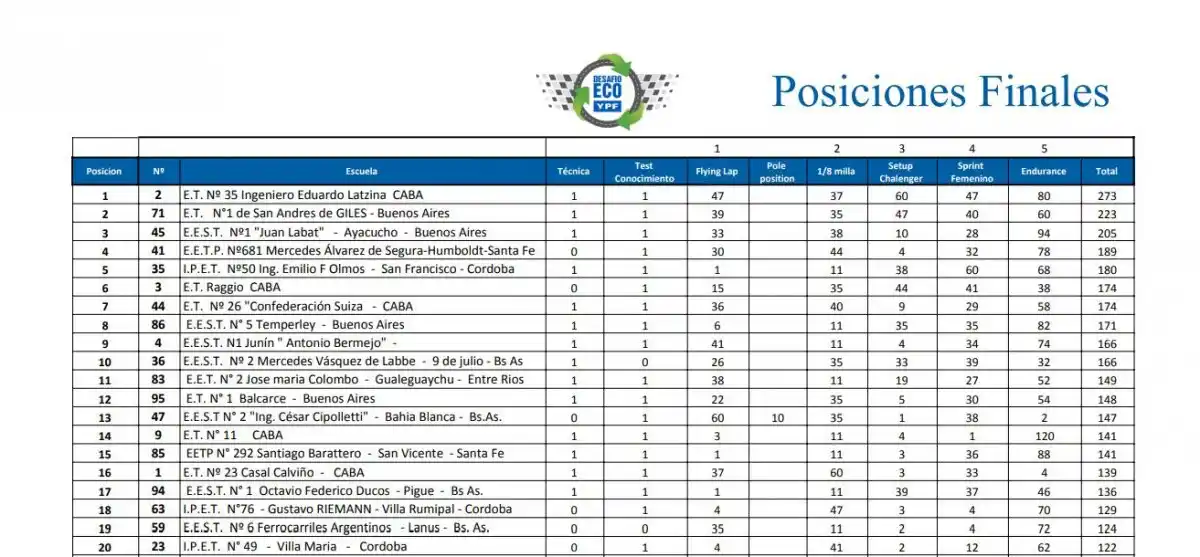 Un grupo de estudiantes de la Escuela de Educación Técnica N°2 "Presbítero José María Colombo" lograron una excelente performance en el Desafío Eco YPF 2019, que se desarrolló entre el 30 de noviembre y el 1 de diciembre en el Autódromo Juan y Oscar Galvez de la ciudad de Buenos Aires. El Desafío Eco YPF es una competencia única con autos eléctricos de emisión CERO, diseñados por estudiantes de escuelas técnicas de la Argentina. En esta edición participaron más de 95 escuelas técnicas de todo el país y los alumnos de la E.E.T. Nº2 quedaron en el puesto 11, un muy buen rendimiento teniendo en cuenta la gran cantidad de participantes. Los alumnos que participaron fueron Denis Gallop, Leonardo Falco, Luciano Migueles, Milton Roldan, Adrian Gonzalez, Angel Carrizzo, Nahuel de la Cruz,, Jose Jossi, Santiago Pereyra y Martina Gette, quien fue la piloto del auto eléctrico que diseñaron. “Alcanza unos 30 kilómetros por hora en superficies llanas y puede llegar hasta los 50 kilómetros por hora en bajada”, contó Martina a ElDía, aunque enseguida tanto ella como sus compañeros alcanzaron que lo importante en la competencia lo ligero que uno puede andar: “Es una competencia de rendimiento, no de velocidad. Lo importante es que con una sola carga poder completar todas las competencias a lo largo de todos los días”. Los profesores responsables que apoyaron a los chicos fueron Damian Ruíz Diaz y Alejo Milicich, y además fueron acompañados por Corina Aguet, Matias Gette y Silvio Galan. “Queremos agradecer a todas las empresas y las instituciones de la ciudad que nos ayudaron a que todo esto sea posible, y al Municipio, que nos apoyó también para lograr este objetivo”, reconoció el equipo de la E.E.T. Nº2. Las empresas que apoyaron a los alumnos de la Escuela de Educación Técnica N°2 en el Desafío Eco YPF 2019: - Municipalidad de Gualeguaychú - Metalúrgica Hermann S.A. - Nuevo Remis Avenida. - Promo Electro 1986. - Cooperativa Eléctrica Gualeguaychú - Río Uruguay Seguros. - AMET Reg. XI - Sindicato de Luz y Fuerza. Mercedes Bs As. Seccional Gualeguaychú. - Marcelo Gómez YPF La Rotonda. - Pizzeria Piamonte. - El Duende Comidas Rapidas. - Sergio Gonzalez (Papá alumno) - Aluminio Gualeguaychú de Néstor Botto. - Bicicletería Del Río. - Cachito Motos. - Octavio rodamientos. - Diario El Día. - Nepa Climatización. - Asociación Cooperadora EET2. - Compañeros del Taller de Ajuste, Soldadura, Electricidad, Carpintería y Mecánica, por el apoyo y aguante.