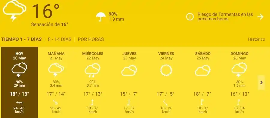La noche del sábado fue el inicio del mal tiempo en la ciudad. La lluvia torrencial que se dio hace casi dos días llego para quedarse, al menos hasta el miércoles. Según informo el servicio meteorológico nacional, habrá que aguantar el agua hasta el miércoles por la tarde. Recién el jueves volvería el sol aunque con una jornada fresca en el que la mínima tocaría los siete grados. Mirá el pronóstico extendido