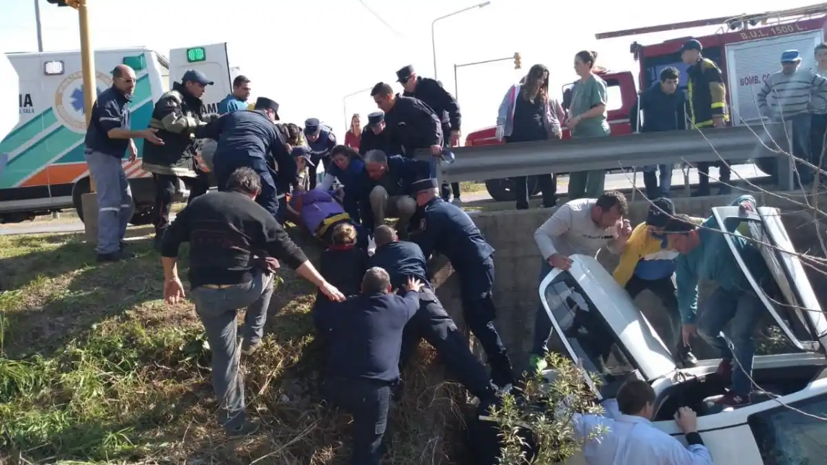 Una persona sufrió heridas tras un impresionante accidente ocurrido sobre la Ruta 39, a la altura de Rosario del Tala. Una ambulancia volcó tras chocar con un auto que tras el impacto, cayó a una alcantarilla, ubicada a la vera de la ruta.