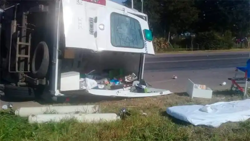 Una ambulancia y un auto protagonizaron un tremendo accidente en la Ruta 39. Producto del fuerte impacto entre los dos vehículos, una mujer resultó lesionada. Poco después de las 13, se produjo un grave incidente de tránsito que involucró a una ambulancia del hospital de Basavilbaso, y un automóvil. El siniestro ocurrió en la Ruta 39 a la altura de Rosario del Tala, la ambulancia volcó sobre la cinta asfáltica, mientras que el auto cayó a una alcantarilla a la vera de la ruta. Elonce pudo saber que el automóvil, conducido por una mujer de apellido Mendiburu, habría "rozado" la parte trasera de la ambulancia que circulaba por la ruta y perdió el control del rodado. Según indicaron fuentes policiales, en la ambulancia viajaban el chofer, una enfermera y una paciente, que regresaban a Basavilbaso tras un control médico en la capital entrerriana. La conductora del auto que quedó en la banquina, fue rescatada por los bomberos, ya que la posición en la que había quedado. Como consecuencia del vuelco, las cuatro personas sufrieron lesiones leves, aunque el chofer de la ambulancia, debió ser trasladado al hospital para realizar estudios. Pese a las impactantes imágenes, las personas involucradas en el accidente, no sufrieron lesiones graves. En el lugar la Policía, con la colaboración de Bomberos Zapadores y Voluntarios realizaron un operativo especial para controlar la circulación. Se debió interrumpir el tránsito en un tramo de la Ruta 39, entre las calles Alighieri y la Avenida San Martín. Por tal motivo, se había desviado por Avenida Rivadavia.