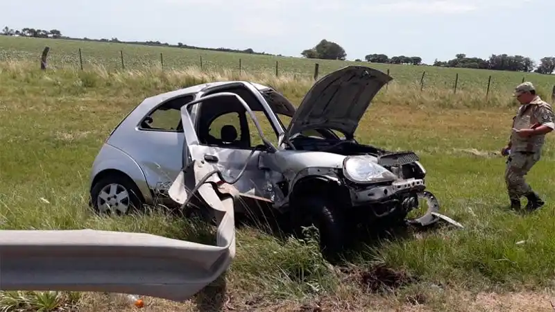 Sucedió este miércoles a la altura del kilómetro 24, dónde por causas que se trataban de establecer, el conductor de un automóvil Ford Ka, que circulaba de norte a sur, perdió el control del vehículo, despistó de la cinta asfáltica y chocó contra un guardarrail. El automóvil, que era conducido por Mateo Etchenausse, de 20 años, domiciliado en Villaguay, terminó incrustándose contra el guardarrail de una alcantarilla, pero afortunadamente, la barra de hierro no ingresó al habitáculo del Ford Etchenausse sufrió lesiones que demandaron su asistencia y posterior traslado al Hospital Centenario de Gualeguaychú, tarea que estuvo a cargo de una ambulancia de Vida. Debido al traslado del joven, el perro caniche que viajaba con el conductor quedó al cuidado de los Bomberos Voluntarios de Ceibas. Según indicaron desde el cuartel, la mascota del accidentado resultó ilesa. En el lugar actuaron, además del personal de Bomberos Voluntarios de Ceibas, la Brigada Abigeato Perdices, la Caminera y Criminalística de Gualeguaychú. (fuente: elonce)