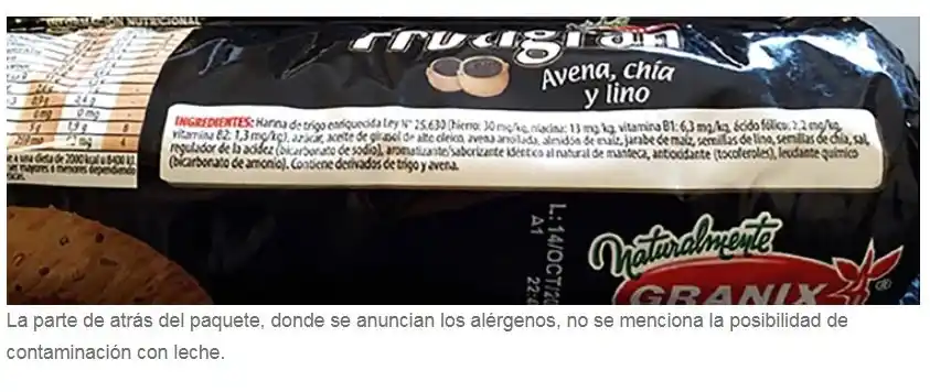 Es porque no aclara en el paquete que "el producto podría contener leche". A principios de febrero, el organismo ya había prohibido la venta de varias partidas por esta misma razón. La nueva decisión se anunció a través de la Disposición 627/2020 publicada en el Boletín Oficial.