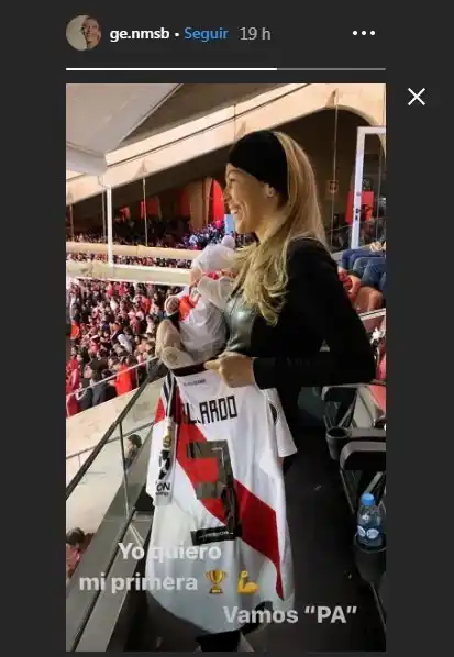 La "muñeca" técnica del Muñeco Marcelo Gallardo (43) volvió a brillar el martes por la noche, cuando River se impuso 2-0 ante Boca por el partido de ida de la semifinal de la Copa Libertadores de América 2019. Entre los más de 60 mil fanáticos que alentaron al equipo dirigido por Gallardo se destacaron dos en particular: nada menos que su exmujer, Geraldine la Rosa (43), con Benjamín Keanu, el bebé de dos meses fruto de su relación. Como una fanática más, la diseñadora de modas compartió una tierna postal a través desde su Instagram Stories desde uno de los palcos vip del Monumental con su hijo en brazos. “Yo quiero la primera Copa. Vamos, pá”, escribió en nombre del recién nacido. Súper confiada, Geraldine publicó la foto antes de que el Millonario se imponga en el encuentro ante el Xeneize. Marcelo Gallardo y Geraldine la Rosa fueron padres también de Nahuel (21), Matías (15) y Santino (12). ¿Habrá reconciliación en puerta tras los rumores de romance y posterior ruptura entre el Muñeco y la periodista Alina Moine?