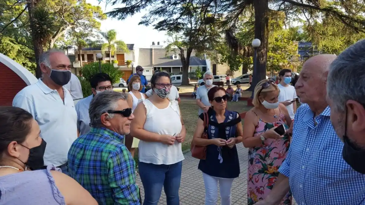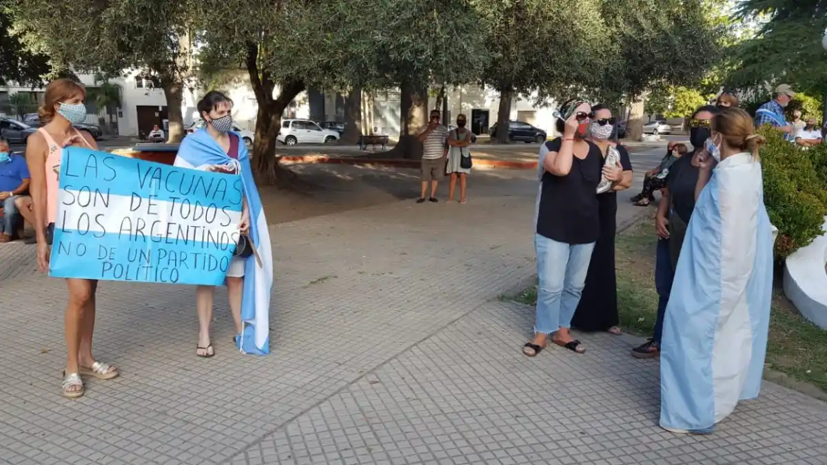 El sábado a las 18 horas, más de 50 vecinos de Gualeguaychú se concentraron en la plaza Urquiza, frente a la Municipalidad, bajo la consigna de la movilización nacional que convocó la oposición luego de que se supieran las diferentes polémicas de los vacunados VIP –a nivel nacional– y los funcionarios que recibieron su dosis contra el coronavirus a nivel local y provincial. Con carteles con la leyenda “Las vacunas son de todos los argentinos, no de un partido político”, las personas se comenzaron a acercar a la plaza que está frente al Municipio, muchos de ellos con banderas argentinas, casi todos con tapabocas y durante el acto central tratando de mantener el mayor distanciamiento social posible. La movilización fue convocada a nivel nacional por los espacios opositores, pero en los lugares del país donde se realizó contó con la presencia de referentes de Juntos por el Cambio; y Gualeguaychú no fue la excepción: estuvieron presentes en la plaza el senador nacional Alfredo de Angeli, el diputado provincial Nicolás Mattiauda y la concejal Alejadra Leissa. También estaba Jaime Benedetti, referente de la Unión Cívica Radical de Larroque y hermano del diputado nacional de Juntos por el Cambio Atilio Benedetti. En lo que respecta a los otros dos ediles del bloque local de Juntos por el Cambio, Pablo Echandi y Juan Ignacio Olano, ambos debieron viajar a Buenos Aires por diferentes motivos, por lo que en lugar de marchar en la ciudad lo hicieron en Plaza de Mayo, donde fue la convocatoria más multitudinaria. Sin embargo, ninguno de los referentes de la oposición presentes tomó la palabra durante la protesta, sino que se optó por poner un micrófono abierto y que cada manifestante que quisiera expresarse pudiera hacerlo. En este sentido, se pudo escuchar la palabra de personas de diferentes edades, sexo y extractos sociales, quienes manifestaron su indignación sobre el escándalo de los vacunadores para privilegiados –algo que le costó la renuncia al ministro de Salud de la Nación Ginés González García– y también sobre el listado de funcionarios locales que recibieron su dosis. Algunos de los vecinos que tomaron el micrófono dijeron un discurso moderado, en la cual se reclamaban sanciones para los que recibieron su vacuna sin ser grupos de riesgo, hasta alegorías mucho más radicales, como el pedido de renuncia del Intendente Martín Piaggio y del secretario de Salud Martín Roberto Piaggio. Finalmente, el acto concluyó con la entonación del Himno Nacional Argentino.