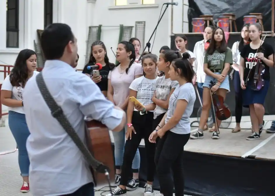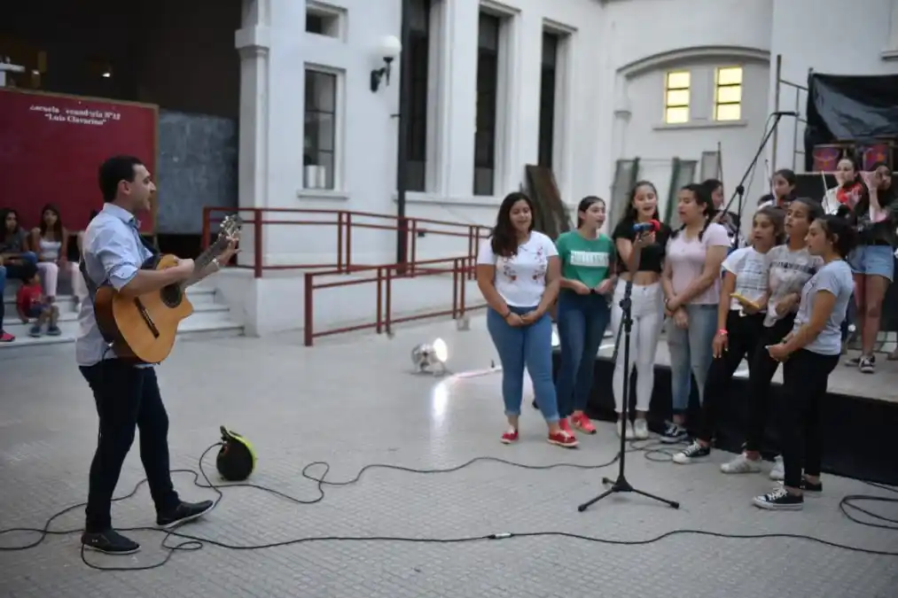 "La idea primera es disfrutar la música, tocar los instrumentos para después ir entendiéndola”, contó el docente Ezequiel Parrilla a ElDía mientras prepara los últimos detalles de la presentación del taller de Producción Musical en la muestra de áreas de la Escuela Nacional N° 12 (ex Colegio Nacional) que tuvo lugar el jueves pasado. Este joven de 31 años vivió toda su infancia en Gualeguaychú, hasta que se fue a vivir a Buenos Aires. En 2012, en búsqueda de una vida más tranquila, volvió a la ciudad, donde da clases particulares de instrumentos y es profesor en escuelas. En Buenos Aires se formó en el Conservatorio Juan José Castro de Martínez y ya de vuelta en Gualeguaychú hizo el profesorado de música en el Instituto Musicante. Este año emprendió un proyecto educativo con el que sueña hace mucho tiempo: conformar una orquesta, pero no cualquier orquesta, una en la que la consigna sea disfrutar. “Hasta el año pasado eran 36 horas para Arte las que tenía la escuela, pero se recortaron y actualmente sólo quedan seis”, contó sobre el taller que comenzó siendo únicamente para los alumnos del Nacional hasta que propuso abrirlo a toda la comunidad. “De a poco su fueron sumando, se integraron los violines a los que les doy clase en forma particular y otros tanto que tienen la necesidad de hacer música. Cuando a los chicos se les da la oportunidad, ellos la aprovechan”, indicó el maestro que toca clarinete, violín, piano, flauta traversa, acordeón y guitarra, entre otros instrumentos. Las clases del Taller de Producción son los jueves y los sábados, día este último en que el grupo suele completarse. “Es de considerar el compromiso de los chicos, muchos de ellos ya adolescentes, que salen los viernes, por ejemplo. Y el sábado están firmes para ensayar. Por eso le planteé la necesidad al Municipio de proteger este taller, porque así como recortaron 30 horas de un año a otro, tengo el temor de que desaparezca”, indicó. Estudiantes avanzados acompañando a quienes intentan tocar un instrumento por primera vez. Adultos mayores, de otro taller que coordina el profesor, integrándose junto a niños. Todas escenas que gratifican a quienes creen de verdad en este tipo de proyectos, a quienes le ponen el cuerpo al arte. Todo eso pasa en el taller del Nacional. “Lo que más rescato de este año, que yo lo tomo como prueba piloto, es el valor que los chicos le dan a esto. A pesar de ser heterogéneo, es un grupo muy comprometido, muy compañero. Eso es lo más gratificante”, sintetizó Parrilla sobre la incipiente orquesta que, además del coro cuente violines, percusión, guitarra, teclados y un acordeón.