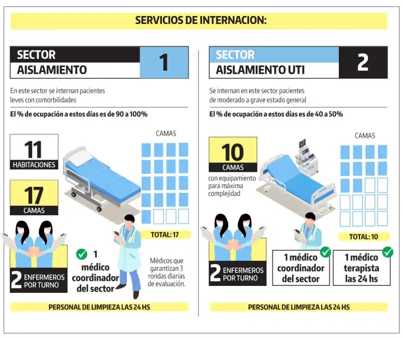 Mónica Farabello Las 24 horas de los 365 días del año, el Hospital de Gualeguaychú cuenta con atención médica. En medio de una de las crisis sanitarias más importantes del siglo, debieron redoblar esfuerzos e insumos para dar respuesta; de todos modos, nada alcanza. ElDía conversó con una de las referentes del Hospital Centenario, Keila Heidenreich, quien detalló la estructura sanitaria con la que hoy cuenta la ciudad. En primera instancia, se encuentra el sector de admisión/triage con enfermería las 24 horas y personal administrativo de mesa de entradas. La guardia externa está cubierta por las siguientes especialidades médicas los 365 días del año: Guardia general de agudos sector no febril/respiratorio. 1 medico por guardia para la emergencia pre hospitalaria; 1 medico clínico y/o generalista para las consultas por guardia; 1 cirujano general; 1 toco ginecólogo; 2 profesionales del equipo de salud mental; 1 chofer de ambulancia; 3 enfermeros por turno; 1 Personal de limpieza por turno; 1 operador de pre emergencias; 1 personal de admisión; 1 bioquímico; 1 técnico en laboratorio. A su vez acompañan a este equipo para respuesta frente a cualquier urgencia con programación diaria las siguientes especialidades: Neurología, neurocirugía, oftalmología, otorrinolaringología, anestesia. Traumatología, cardiología, trabajo social. Guardia febril adultos Este sector tomó vital importancia en la organización actual, debido a que la fiebre es uno de los síntomas más comunes en pacientes con Coronavirus. Allí se encuentran trabajando: 1 medico clínico y/o generalista; 1 medico de refuerzo en horario de hisopados programados; 2 enfermeros por turno y 1 personal de limpieza las 24 horas. En tanto, en la guardia pediátrica (la única activa de la ciudad), se cuenta con 1 personal de admisión; personal de limpieza las 24 horas; 2 pediatras de guardia activa, mas refuerzo del equipo de residencia médica; 2 enfermeras por turno; 2 ambulancias para traslados de pacientes covid positivo y/o sospechosos. Línea saludhable Esta línea fue instaurada especialmente para esta situación excepcional que vive Gualeguaychú y el mundo. Allí trabajan tres operadores voluntarios por turnos de 4 horas; 1 coordinador por turno y está funcionando las 24 horas los 7 días de la semana. Además, unos 50 estudiantes de carreras afines a la salud cumplimentan esa labor. Epidemiología, la clave Esta área es una de las más sensibles en medio de la pandemia por Covid-19. Cuentan con 10 operadores para seguimiento telefónico de contactos estrechos, ayudados también por los operadores de la línea saludhable. Siguen diariamente a más de 1300 vecinos de la ciudad y activan el sistema de turnos y traslados para control médico en caso de detectar síntomas compatibles con Covid. Además, acompañan diariamente con todas las recomendaciones sanitarias de cuidado y asesorar a los núcleos familiares, activando la red de apoyo en caso de reprogramación de turnos médicos, entrega de medicación crónica, asistencia social, y coordinación con voluntariado de jóvenes frente a necesidad de mandados o asistencia domiciliaria. También trabajan allí 3 operadores de carga al Sisa (sistema de datos) y notificación ministerial de contactos estrechos; 3 operadores Sisa de notificación de casos sospechosos, confirmados, notificación de altas, confección de estadística de estado de situación, carga al sistema de seguimiento de consultas diarias, informe ministerial, confección de árbol de contactos, diagnóstico y confección de la línea de tiempo de casos activos, y otras actividades. Se desempeña además, una enfermera supervisora a cargo de inmunizaciones, provisión de vacunas, carga al sisa, stock y pedidos de efectores del departamento; una administrativa para notificación y vigilancia de enfermedades de notificación obligatoria de todo los efectores del departamento y 3 enfermeras para búsqueda de nexos, visitas a instituciones para supervisión de protocolos, definición de contactos estrechos, supervisión de casos, seguimiento telefónico de contactos estrechos, aislamiento de personal esencial. Los números en internación Esta área está dividida en tres sectores: Por un lado el aislamiento para pacientes leves; otro de pacientes moderados a graves y la Unidad de Terapia Intensiva para pacientes No Covid. El sector de aislamiento 1 cuenta con una capacidad total de 17 camas ubicadas en 11 habitaciones. Actualmente el porcentaje de ocupación es de 90 al 100%. En este sector se internan pacientes leves con comorbilidades y cuenta con 2 enfermeros por turno, personal de limpieza las 24 horas; 1 medico coordinador del sector, y médicos que garantizan 3 rondas diarias de evaluación. El sector de aislamiento 2 UTI (Unidad de Terapia Intensiva) tiene una capacidad de 10 camas con equipamiento para máxima complejidad de los pacientes. Aquí se internan personas con un cuadro moderado a grave de su estado general. El porcentaje de ocupación actual ronda entre el 40 y el 50%. Este sector cuenta con 2 enfermeros por turnos; medico terapista las 24 horas, un coordinador general del sector y personal de limpieza las 24 horas. El sector UTI Polivalente es un sector No Covid. Allí se cuenta con 6 camas; 1 médico terapista las 24 horas; 2 o 3 enfermeros por turno; personal de limpieza las 24 horas. En el sector aislamiento maternidad se cuenta con 3 habitaciones con baño privado, sala de partos y recepción de recién nacido diferenciada, actualmente con ocupación del 66%. En Gualeguaychú ya se registraron 2 nacimientos de niños en perfecto estado de salud. Ambos nacieron esta semana y son hijos de madres recuperadas de Covid. Internación y aislamiento externo El Hotel Embajador cuenta con 74 habitaciones; 2 enfermeros por turno; personal de limpieza las 24 horas y 3 médicos a cargo del seguimiento diario de los pacientes. En el complejo Atama trabaja 1 enfermero por tur