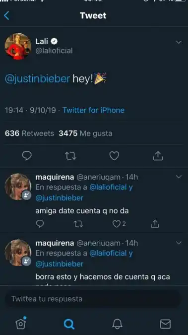 Este jueves 10 Lali Espósito está celebrando sus 28 años y, al mismo tiempo, estrena el video de La Ligera, la nueva canción de la artista. Sin embargo, no todas son buenas en este día tan especial, ya que en Twitter se encontró con una especie de piquete de ¡sus propias fans! Es que en la previa de su celebración, la cantante saludó a Justin Bieber desde su cuenta de Instagram, y la decisión se le volvió en contra, ya que las Lalitas comenzaron a cuestionarla fuertemente. "Amiga, date cuenta que no da"; "Borrá esto y hacemos de cuenta que acá no pasó nada"; "Vos no Lali, por favor"; "No Lali, dale, yo me peleo con la gente defendiendo tu música, no hagas que te cancelen"; "Te van a salir a matar"; "Lali , qué hacés, Dios"; fueron algunos de los mensajes lapidarios, entre otros memes, con los que comenzaron a cuestionar a Lali. Justin últimamente quedó muy cuestionado luego defender públicamente a Chris Brown, el rapero acusado de golpear salvajemente a Rihanna, de quien fue pareja, en 2009. "Tiene que morir una persona para reconocer el talento que merecen. Yo lo aviso ahora. Cuando Chris Brown fallezca tras una larga vida, van a extrañar lo que tuvieron enfrente todo el tiempo. Confíen en mi, ya lo verán. La gente que ha ignorado el talento de este hombre por un error que cometió ¡necesita reevaluarse! Te amo, Chris Brown", expresó el cantante en su cuenta de Instagram, y terminó repudiado en todo el mundo. Por esta razón sorprendió el tuit de Espósito, y las reacciones de sus seguidores no tardaron en aparecer.