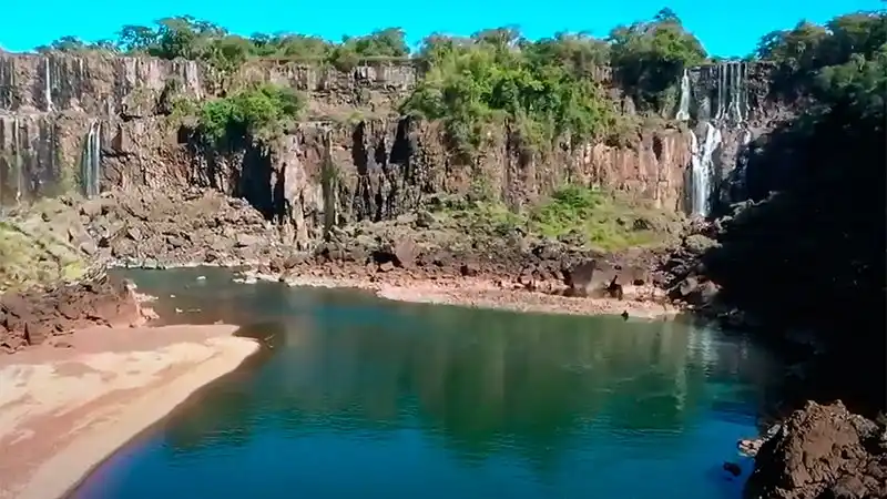 Las Cataratas son el testimonio más fuerte de la bajante del río Iguazú que continúa en la quinta parte de su caudal habitual y solo se recuperaría con las lluvias de junio. "Sólo continúan con agua la Garganta del Diablo y el Salto San Martín", dijo el intendente del Parque Nacional Iguazú, Sergio Acosta. "En lo que queda de mayo estaríamos en las mismas condiciones y recién en junio lloverá en las nacientes del río Iguazú", explicó. "El tema es que no hay agua", dijo el funcionario quien no atribuye la falta de agua en Cataratas a las represas brasileñas. "El problema es que no hay lluvias y las represas administran la poca agua que hay. Las 6 represas que están en el Iguazú superior son hidroeléctricas y tienen que soltar agua para generar energía", dijo. Explicó que "están coordinadas, entonces suelta la primera allá lejos y esa agua la van aprovechando aguas abajo, y cuando Baixo Iguazú termina de soltar, es el agua que llega a Cataratas". Acosta dijo a Misiones Online que hay semanas en que llega un poco más y en otras el caudal baja, pero "el problema es que no hay lluvias y no pueden administrar el agua que no tienen". "Según los pronósticos, las lluvias llegarían a principios de junio sobre las nacientes del río Iguazú. Ojalá se cumpla el pronóstico y sea así", dijo. Con una planta de 35 guardaparques, el Parque Nacional Iguazú apunta ahora a vigilar la conservación ecológica. Consideró que esta situación es un efecto del fenómeno de La Niña que ya afectó el nivel del Iguazú en 2019. "El nivel fue bajo el año pasado", dijo Acosta, mencionando también a otros cursos de agua de la región como el Paraná y el Uruguay, que dejó prácticamente sin agua al Moconá.
